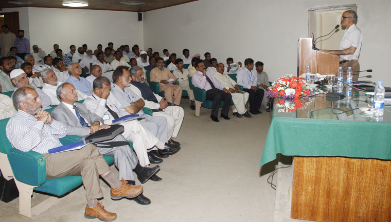 Over 1.3 billion people in the world were living without electricity and one billion people, including around 700 million South Asians, will remain without electricity until 2030 if the Nations couldn’t switched to alternative sources of energy since conventional sources would be becoming costlier with the each passing day. This was stated by the speakers at a Training Workshop on “Construction, Operation & Maintenance of Bio-Gas Tube wells” jointly organized by Directorate General Agriculture (Field) Punjab and University of Agriculture, Faisalabad (UAF) on Saturday at New Senate Hall. The workshop was presided over by the Vice Chancellor UAF Prof. Dr. Iqrar Ahmad Khan, while Vice Chancellor PMAS Arid Agricultural University Rawalpindi Prof. Dr. Rai Niaz Ahmad, Additional Secretary, Planning Ahmad Ali Zafar and D.G. Field Dr. Muhammad Bashir were the guest of honor. Others speakers include Project Director, Dr. Muhammad Ghaffar Dogar, Prof. Dr. Muhammad Iqbal, Dean Faculty of Agriculture, UAF, Deputy Project Director, Dr. Muhammad Ashraf, D. G. PCRET Islamabad Khalid Islam and Dr. Manzoor Ahmad. Dr. Iqrar Ahmad Khan urged the need for commercial options of Bio-Gas potential with constant marketing aspects. He stressed for introduction of new disciplines of software Engineering and Material Science Engineering Disciplines in the university keeping in view the requirement of precision futuristic agriculture. He called for treatment of methane (CH4) gas into Bio-Gas Energy for the purpose of protection of environment and green house impact. Dr. Rai Niaz Ahmad said that Pakistan has huge potential to develop renewable energy projects since it was the third largest off-grid population after India and Bangladesh and has excellent solar, bio-mass, micro-hydro opportunities coupled with centralized landowning, which could make credit guarantees easier. He said that many projects are being launched at Chakwal which has great potential for horticulture and agricultural productivity. Mr. Ahmad Ali Zafar said that presently, the domestic solid waste in Pakistan has not been managed in a satisfactory and adequate manner as far as its collection, transportation & disposal or dumping are concerned regardless of the size of the city. He added that polluted dust blows and people suffers from living in such conditions. “It is estimated that the urban areas of Pakistan generate over 55,000 tones of solid wastes daily” he maintained. Dr. Muhammad Iqbal said that we can minimize the total energy cost of tube well installed in Punjab which is touching Rs. 337 billion annually. He added that Punjab can generate 5400 Mega Watt Electricity with Bio-Mass. Dr. Muhammad Bashir said that as per livestock census, there are 46.69 million of animals (buffaloes, cows, bullocks) in Pakistan (FBS, 2002b) on the average, the daily dung dropping of a medium size animal is estimated at 15 kg per-day. He was of the view that Pakistan is spending 16 billion dollars per annum on the import of oil for generation of energy which could be minimized by designing such Bio-Gas projects. Dr. M. Ghaffar Dogar said that government of Punjab in first phase has launched 50 Bio-Gas plants project with subsidy of over 5 lac/unit and it will be completed in end of May this year. later on Prof. Dr. Iqrar Ahmad Khan UAF VC and D.G. Agriculture (Field) Punjab Dr. Bashir Ahmad signed an MOU in order to promote collaboration between both organization for successful launching of Bio-Gas Tube well scheme.