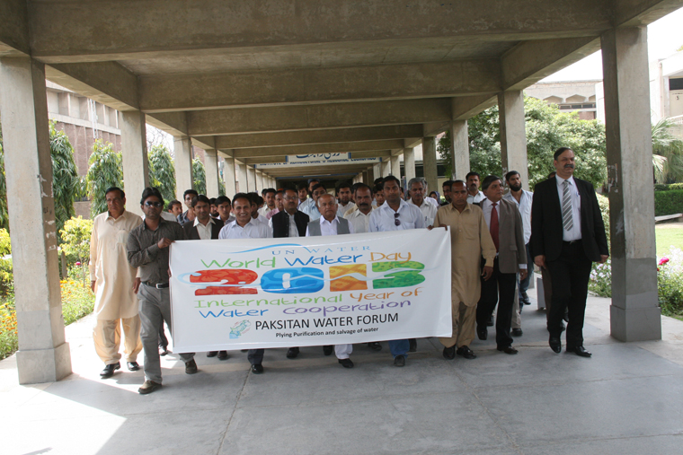 Water shortfall in the country will surge to 31 percent till 2025 if tangible steps are not taken to cope with the situation, This was stated by speakers at a seminar arranged by the Department of Irrigation and Water Management Research Centre, University of Agriculture Faisalabad in collaboration with International Centre for Agricultural Research in the Dry Areas (ICARDA) and United States Department of Agriculture (USDA) to observe World Water Day at New Senate Hall. The seminar was presided over by UAF Acting Vice Chancellor Prof Dr Iqbal Zafar whereas International Union for Conservation of Nature (IUCN) Country Representative Dr Mahmood Akhtar Cheema, ICARDA Country Head Dr Abdul Majeed were guests of honour. South Asian Conservation Agriculture Network (SACAN) CEO Dr Mushtaq Ahmad Gill, Water Management Director Prof Dr Allah Buksh, Prof Dr Muhammad Irshad and Dr Jahanzeb Mausaud also spoke on the occasion. Prof Dr Iqbal Zafar said that water availability in 2025 will stand at around 100 MAF against the need of 135 MAF. He stressed the need to increase the water storage capacity to save the life here. He said the water resources are shrinking and the population is rapidly increasing. To meet the demand of the water, a comprehensive awareness drive needs to be kicked off to sensitize the public about rational usage and avoid its wastage. Dr Mahmood Akhtar Cheema said that India was setting up 11 big dams whereas we are still in a fix over the construction of dams as no breakthrough has been made on it. He said that because of climate changes, glaciers are melting. He added: “due to absence of water conservation methods, we are experiencing heavy floods, claiming many lives and destroying agriculture”. He said the per capita water availability at the time of inception of the country was 5,600 MAF which is standing only at 1,000 MAF, placing Pakistan in the water scarce country. He suggested adopting a mechanism of water usage charges reasonability to avoid its misuse. Dr Abdul Majeed stressed the need to promote the water conservation techniques by sensitizing the people and making fruitful measures. He said the ICARDA’s strategy combines continuity with change - addressing current problems while expanding the focus to emerging challenges such as climate change and desertification. Dr Mushtaq Ahmad Gill said that the country is wasting its two third of water owing to traditional conservation methods and agricultural practices. He was of the view that per capita water availability in United States is 6,000 cubic meter, in Australia 5,500 cubic meter and in China 2,200 cubic meter. Whereas, it is only 1000 cubic meter in Pakistan, posing a threat to life if immediate steps were not taken. He showed his concern that no authority is working for the ground water saving. He stressed the need to set up off-channels water reservoirs in the country to preserve floods water etc for preventing the untoward situation. The same water can be used later. He said Punjab is housing around 1.3 million tube wells to pump out groundwater which is causing decrease in the water level. He said 80 percent of these tub wells are being run on diesels, raising the cost manifold. The alternative methods should be applied to face the situation, he suggested. Prof Dr Allah Buksh said that big dams like Kala Bagh dam should be set up to save the water for the coming generation. He was of the view that applying of technique of efficient use of water is the need of hour to combat the water scarcity issue. Jahanzeb Mausaud said that enhanced cooperation among the provinces will help devise a comprehensive plan to face the challenge. He also stressed the need to increase the investment on the water reservoirs to boost the saving capacity. He highlighted international issues and conflicts of water in the world. They also hold a walk to mark World Water Day