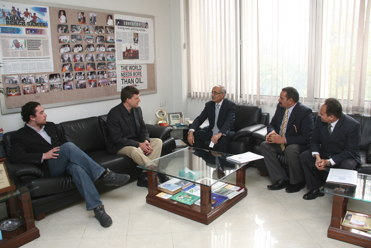 A state of the art Centre of Remote Sensing for Agro Informatics would be set up at University of Agriculture Faisalabad to train the officials of crop reporting survey of the provincial government and will put its trickle down effects at farmer’s level. The announcement was made during a meeting of Mr. Jan Dempewolf Assistant Research Professor, Department of Geographical Science, University of Maryland, USA and Mr. Jon Nording (UMD) with UAF VC Prof. Dr. Iqrar Ahmad Khan (SI) to discuss the execution details of FAO-USDA joint project of remote sensing program here at UAF Syndicate Room on Thursday morning. The United States Agency for International Development (USAID) will fund the proposed centre that would be executed by FAO and University of Agriculture Faisalabad jointly. Briefing the activities of the centre, UAF VC Prof. Dr. Iqrar Ahmad Khan said the country experienced devastating floods during the last three years and every happening of flood has been witnessed on different places invites the researchers to investigate the climatic effects and properly forecast the masses in future by using remote sensing and other techniques adding that the centre would help the researchers and policy organs of the government for making appropriate arrangements prior to such calamities. He said the UAF faculty has enormous potential to run the centre as numerous faculty members have foreign exposure and expertise in remote sensing and climate change. Dr. Iqrar Ahmad Khan revealed that setting up a policy centre at UAF was also on the cards by Australian Centre for International Agricultural Research (ACIAR). He said by design UAF is offering financial assistance to the 25% students belonging to rural areas and we are looking forward to expand it to at least 40 % in the next few years. Dr. Khan said UAF remains busy in capacity building of graduates and hold various events for community building to bring prosperity in the rural areas of the country. Participating in the meeting Prof. Dr. Ashfaq Ahmad Chatha Director External Linkages said many researchers at UAF were busy in various research projects relating to remote sensing, climate change, and GIS with limited infrastructure and facilities but there was a dire need to create a window for such people to jell together and work closely with each other. He said a team of researchers was executing a project with University of Boone US with a little share of remote sensing. Besides Dr. Ashfaq Ahmad Chatha, those who attended the meeting include Prof. Allah Bakhsh, Syed Aftab Wajid, Dr. Tasneem Khaliq, Dr. Muhammad Jehanzeb Masud Cheema, Dr. Ahsan Latif and Dr. Hammad Ahmad. Later the visiting delegation inspected GIS, and Remote Sensing Labs of the University and also visited the proposed site of the centre at PARS.