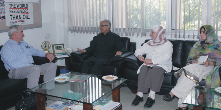 Australian and Pakistani Scientists were striving for boost the productivity of Mango, citrus and Dairy in order to fulfill the dream of poverty alleviation and rural development of the country. This was stated by Dr. John Spriggs Professor of Australian Institute for Sustainable Communities, University of Canberra, while addressing the participants of Australia Pakistan Agriculture Sector Linkages Program (ASLP ii) research group meeting at Syndicate Hall of the University of Agriculture, Faisalabad on Friday morning. He said that horticultural and dairy sectors of Pakistan have great productivity potential which is not being exploited as per capacity. He emphasized the scientists to device farmer’s friendly solutions and packages .He maintained that ASLP ii Project will provide guideline towards the destination of Prosperity and Rural Development. He was of the view that this 3-years duration Project has been initiated in under developed areas of Sindh and Punjab provinces. Earlier UAF Vice Chancellor, Prof. Dr. Iqrar Ahmad Khan said that UAF has become a favorite destiny for Internationalization. He added that many joint research projects are being undertaken with the collaboration of various educational and research institutions of developed nations of the world. He stressed the need for more mutual cooperation with Australia in the fields of water conservation and renewable energy. Prof. Dr. Sandra Heaney Mustafa told the participants that base line survey has been finalized and further planning is underway on the basis of generated data. She said that workshops would be conducted in rural areas of both Province during January 2013. Prof. Dr. Amaan Malik, Dr Izhar Ahmad Khan, Dr. Babar Shahbaz from UAF,Nadeem Akbar, Hasnain Shah and Tabinda Qaisar from National Agricultural Research Council and others attended the meeting.