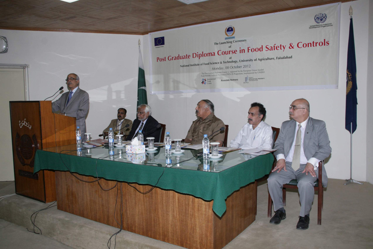Punjab Food Authority will start its operations at Faisalabad in the next two months aiming at arresting the malpractices in the whole food supply chain system and ensure the food safety standards in Faisalabad. This was stated by Secretary Food Mr. Irfan Ali while addressing the participants of a launching ceremony of Postgraduate Diploma Course on Food Safety and Control as chief guest at New Senate Hall on Monday morning. The Secretary said that the government has transformed a 40 years old system by establishing a food authority with objectives to look and regulate the whole food supply chain system through a team of food professionals. Now the governments of Sindh, KPK and Balochistan are pursuing the Punjab Government for making such arrangements in their respective provinces. He said owing to prestigious institution, able faculty and state of the art teaching and research facilities, UAF has become a mainstay of our operations and the linkage between UAF and PFA is an integral part of the mutual goals. He said Punjab Food Authority is been manned by UAF graduates and by keeping in view the upcoming offshoots of the authority in other cities of the province, PFA will be the major employer of food graduates produced by UAF. He asked the University management for providing policy support for future guidance adding that food production, manufacturing, and future supply chain need to be regulated effectively. The secretary vowed to sign an MOU with UAF for further boosting the collaboration. Earlier, UAF Vice Chancellor Prof. Dr. Iqrar Ahmad Khan (SI) said that UAF is a proud player of producing best human resource to serve the industry, business and farming community at large. Referring towards emerging global trade trends, he said we need to link our curriculum with international job market thereby to address the issues as a responsible member of the international community. He described the newly offered diploma course a stepping stone towards degree programs in food science. He said University is very conscious about the issues of food security and safety issues hence it is going to be a national policy center for agriculture and food security “we will voice our heads on data with imperial evidence neutrally and without any partiality for improvements in the system” he added. Dr. Iqrar Ahmad Khan said globally diseases are categorized on the bases of malnutrition and bad food habits or obesity so we need to make the people aware of their food so that they remain vigilant about their food habits, food mindsets and knowledge about the contents what they are eating. He extended his full support to make the new diploma course a success story. Officer Incharge Trade Related Technical Assistance (TRTA II) Program Mr. Ali Abbas Qazilbash said that his organization took the first such initiative in Pakistan to develop PGDC in collaboration with 3 universities, including University of Karachi, University of Veterinary and Animal Sciences (UVAS), and University of Agriculture Faisalabad (UAF) with an emphasis on practical proficiency development. He said PGDC is supported by European Union (EU) funded Trade Related Technical Assistance (TRTA II) Program, implanted by United Nations Industrial Development Organization (UNIDO) in association with International Trade Centre (ITC) and world Intellectual Property Organization (WIPO) in three universities of the country. He said under the program, the partner universities will be further supported to gain international accreditation of the courses from the Royal Environmental Health Institute of Scotland. He said the course objective of the program was to develop professionals for development, implementation and auditing of food safety and control in the country thereby to enable Pakistan develop capacity to meet the global food safety and quality requirements and enhance competitiveness of food products. He was of the view that postgraduate qualification in food safety will enhance the employability of young graduates and at the same time increasing the safety of locally produced food products, both for internal consumption and for exports. He revealed that the government has change the nomenclature of the post of food inspectors with food safety officer with minimum qualification of 16 years in food technology which will further gear up the pace of betterment in the sector. DG Punjab Food Authority Mr. Asad Islam Mani said the authority is working vigorously to make the people involve in food production, and manufacturing aware of the stringent regulation of malpractices and on the other hand to formulate standards, procedures, processes, and guidelines in relation to any aspect of food including food business, food labeling, food additive, and specify appropriate enforcement systems; specify procedures and guidelines for setting up and accreditation of food laboratories; formulate method of sampling, analysis of samples and reporting of results; specify licensing, prohibition orders, recall procedures, improvement notices or prosecution; provide scientific advice and technical support to the Government in matters related to food; collect and analyze relevant scientific and technical data relating to food; establish a system of network of food operators and consumers to facilitate food safety and quality control; organize training programs in food safety and standards; promote general awareness as to food safety and standards; levy fee for registration, licensing and other services; and to certify food for export. DG NIFSAT, UAF Prof. Dr. Faqir Muhammad Anjum and Asstt. Professor Dr. Atif Randhawa also spoke on the occasion. Earlier visiting secretary food Mr. Irfan Ali inaugurated the Agri. Exhibition at D-ground and inspected various stalls and termed the exhibition a step to be followed by other Agri. Universities of the country.