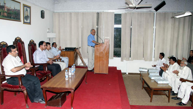 University of Agriculture, Faisalabad has installed 52 Close Circuit Television (CCTV) cameras keeping in view to ensure watch & Ward system at the campus in this regard all entry points to the campus have been closed for security purpose. This was stated by Prof. Dr. Iqrar Ahmad Khan, Vice Chancellor UAF while addressing the farewell party of 6-Security Personnel at Student teacher Centre (STC) Hall here on Thursday. Dr. Iqrar told that only main gate at jail road would be remained open for visitors and other campus communities. He added that security personnel’s were rendering their services for assuring better security atmosphere at the campus and it would be remembered forever. Dr. Khan added that University employees are equally respectable from BPS-1 to BPS-22 and contributing with zeal and enthusiasm for the betterment of institution. Dr. Farooq Ahmad Principal Officer Security & Estate Management while addressing the ceremony said that a Paradigm Shift has been witnessed as for as security arrangements are concerned. He maintained that “Chowkedara” System was replaced with new security trained staff well equipped with modern weapons, information technology tools and loyalty with institution. Mr. Shehzad Mehmood, Estate Officer told that during last 4 years security staff number enhanced from 73 to 143. He added that in various shifts security officials remain alert round the clock and ensuring their mobility in order to secure the campus community. He said that security officials are also serving as Rescue workers and disaster management staff. In the end, Chief Guest Dr. Iqrar Ahmad Khan distributed gifts among outgoing security officials Rana Muhammad Ali, Security Supervisor, Raja Khan, Manzoor Chiragh, Abdul Aziz Butt, Muhammad Yousaf, Muhammad Younas, M. Ismaeel and Muhammad Boota.