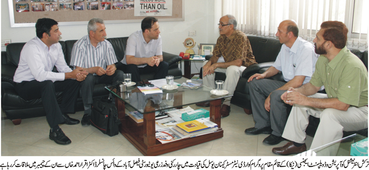 Turkish International Cooperation and Development Agency (TIKA) and University of Agriculture Faisalabad on Sunday joined hands to uplift the livestock sector in Faisalabad district in order to alleviate poverty and uplift rural life. They inked a memorandum of understanding duly singed by Mr. Kenan Uysal, Acting Program Coordinator, TIKA, and UAF Vice Chancellor Prof Dr Iqrar Ahmad Khan. The Turkish delegation is on a 10-day visit to University of Agriculture Faisalabad. On Sunday, the delegation called on UAF Vice Chancellor at VC Chamber followed by attending Deans and Director Meeting presided at Syndicate Room. The Turkish delegation was headed by Mr. Kenan Uysa, Acting Program Coordinator, Turkish Embassy Islamabad who was flanked by Mr. Aziz Ozturk and Mr. Halil Erol from Turkish International Cooperation and Development Agency (TIKA) and Mahmood Saeed, Programme officer, TIKA, Islamabad. Mr. Kenan Uysal said for the promotion of modern goat breeding system, they are providing five beetal goats to each 48 selected families in the district. He said Pakistan and Turkey are enjoying good and brotherly relations that should be more strengthened in the form of the academic exchange programmes, capacity building and researches in order to cope with the common challenges. Mr. Kenan Uysal said that both countries had been enjoining long lasting ties and stood with each at hard time. The relations can be termed as “one nation and two countries”, he added. He said that winning of the Islamic Development Bank’s Science and Technology Award by the UAF among 56 countries was a hallmark that would be written in golden words. He said that being brothers, Turkish considered the award as their victory. He assured of their full cooperation to the university and country in every field in order to strengthen the educational and agricultural sectors. He praised the hospitality shown by Pakistani and UAF upon them. UAF Vice Chancellor Prof Dr Iqrar Ahmad Khan while briefing the delegation about the university said that being the oldest agricultural educational institute, the UAF was mother of the all agricultural universities in eh sub-continent. He said that according to Higher Education Commission, the UAF was best university across the country in the category of Q&S with 75 score. He also said that the campus community is running 214 research projects worth 1600 million.
