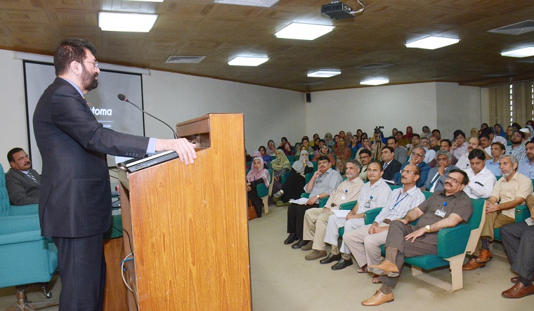 He addressed the faculty of the University of Agriculture Faisalabad at New Senate Hall as chief guest on Wednesday whereas the UAF Vice Chancellor Dr Zafar Iqbal Randhawa was guest of honor. Dr Tariq Banuri said that the commission was putting a special focus on the improvement of quality, access to education, and problem solving research. He said it is prerequisite to invest in the improvement of quality, and capacity building of faculty members to attain the goal of the development. He said that quality should not be compromised at varsities. We have to produce excellent professionals and carry out research relevance of socio-economic needs of masses. Explaining future plans, he said they would build the National Academy for Higher Education for the training and capacity building of the university newly-inducted teaching faculty, and administrative staff. He said that the faculty at the entrance level in the university would be provided three months training at the academy. He said that they would put a special focus on creating leadership qualities to produce excellent administrators as well as vice chancellors. He said that equal importance will be given to education and research. He said that we have to engage the students in the disciplines which are demand driven to flourish. He said that they were developing a mechanism of picking up 15 elite universities out of all universities of the country on their performances. There are 192 universities operating in Pakistan, he said, adding that the mechanism of 15 universes was meant to make them at par with international standards and demands. They will be given autonomy and additional resources. He showed his concern that only 3 percent out 10,000 applicants passed the CSS Examination, speaking the poor quality conditions of our educational institutes. He stressed upon the need to take special measures for quality improvement in education so that students can perform in their chosen areas. He was of the view that they are launching the Major Information Technology platform, on the patron of Nadra, to make available degree attestation. He said that they were extensively working to address the problems of the academy and students with new initiatives and friendly policies. Dr Zafar Iqbal said that academia- industry linkages are need of the hour to fight the challenges of the new era. He said that the target of poverty alleviation can be met with quality education, demand driven research and strong academia-industry linkages. He added that he had dedicated the new building of pro vice chancellor office to the industry to cement the ties. He added that the agriculture was the our backbone, contributing 20 percent to the Gross Domestic Product. Director ORIC Dr Zahir Ahmad Zahir also spoke on the occasion.