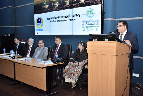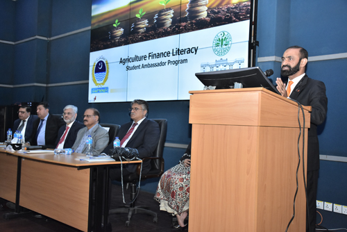FAISALABAD October 28, 2024: State Bank of Pakistan in collaboration with the University of Agriculture Faisalabad has launched Agriculture Financial Literacy Student Ambassador Program to educate the farming community about the agricultural financing scheme in order to get rid them from the exploitation of middle man. It will also help create the awareness among the farmers about the latest agriculture trend. Addressing the launching ceremony, UAF Vice Chancellor Prof Dr Muhammad Sarwar Khan said that 100 UAF students are engaged in the scheme by SBP that will create awareness in the four tehsils of Faisalabad. He said that such initiatives were the need of the hour for the handling of the farming community and a pathway to avoid the middle man. He said it was a matter of concern that the country imports agricultural goods worth billions of the rupees. We have to transform our agriculture sector on modern lines and devise comprehensive polices to shrink the import and jack up the exports. Director- Agriculture Credit & Financial Inclusion Department SBP Abid Qamar-said that this flagship initiative seeks to raise awareness among the farming community regarding available financial schemes and government-driven initiatives. AFLP stands out as a pioneering effort, as it unites all major stakeholders, including SBP, commercial banks, federal, and provincial governments departments, to engage with farmers collectively. He said that that country imports the agriculture goods worth billions that if we become self sufficient in the sector, it will bring prosperity in the country. Waqas Kashif Bajwa-Chief Manager-SBP BSC Faisalabad said that as many respesentives from 11 banks are participating in the launching ceremony. He said that students will the given traning. And the program will be enhanced to rest of the country in future in which others universities will also be engaged Institute of Agriculture Resource Economics UAF Head Dr Muhamamd Asghar, Huma Bukhari-Joint Director-FISD SBP, Nadeem Khanzada- Sr.Joint Director-Agriculture Credit & Financial Inclusion Department spoke on the occasion.