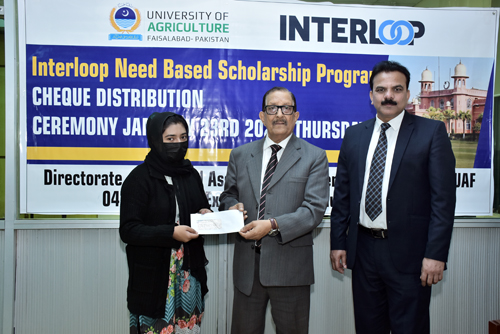 Interloop has provided the scholarship to 22 undergraduate students of University of Agriculture Faisalabad. UAF Vice Chancellor Prof Dr Muhammad Sarwar Khan along with Interloop special secretary to Chairman Col (r)Ijaz Ahmad Nasir and Director Financial Assistance Dr Muhammad Aslam disbursed the cheque at a ceremony. UAF Vice Chancellor Prof Dr Muhammad Sarwar Khan said the University of Agriculture Faisalabad (UAF) is providing scholarships to 8,000 deserving and meritorious students that will help them to quench the thirst of the knowledge and excel in life. He said that many of the students hail from low-income classes and it is difficult for them to pay the fees. Therefore, the university with the financial support of the Federal and Provincial Governments and philanthropists is taking all possible measures for the noble cause. Col (r)Ijaz Ahmad Nasir said that they had supported 54 students of the UAF since 2018 and they are taking all possible measures for the handholding of the deserving students. Waqar Akbar Khan Assistant Director also attended.