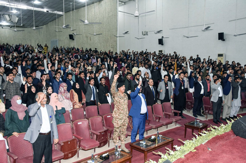 Lieutenant General Nauman Zakriya(HI ,SI) spent an entire day with the students of University of Agriculture Faisalabad (UAF). During his visit, he talked about how Pakistan was created after many sacrifices. He shared valuable insights about the history and sacrifices made to create Pakistan. He explained that our ancestors worked hard and faced many challenges to get an independent homeland. It was achieved through countless sacrifices and struggle by our ancestors, who endured hardships to secure a separate homeland where we could live with freedom and dignity. He reminded the students the importance of remembering and honoring those who gave their lives for the country’s independence. He spoke about the Pakistan Army and its role in protecting the country. He shared how the army works day and night to keep the people of Pakistan safe. Whether its defending against external threats, fighting terrorism or helping people during natural disasters, the Pakistan army is always ready to serve the nation. He praised the efforts and dedication of the soldiers who are always ready to defend the nation. His visit was inspiring for the students as they learned about sacrifices and patriotism.