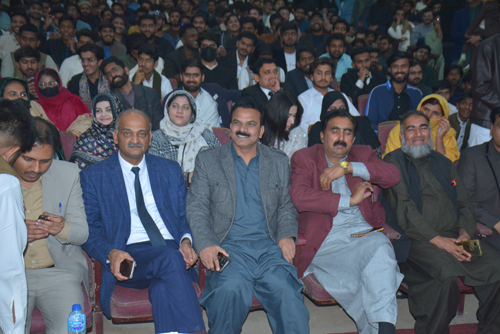 FAISALABAD Feb 19: In the face of decreasing literary activities trend in the young generation, it is prerequisite to promote a literary environment where intellect and creative thinking flourishes and helps the people minutely observe the culture, circumstances and the world. It was stated by University of Agriculture Faisalabad Vice Chancellor Prof Dr Muhammad Sarwar Khan while talking to the participants of Mehfil-E-Mushaira and other events being held at ongoing four-day UAF Lyallpur Art and Literature Festival. Prominent poets including Tahzeeb Hafi, Ali Zaryoun, Mah-e-Nau, Akhtar Munir, Ikram Arfi, and students from various educational institutions participated, engaged the audience with their poetic expressions. The 3rd day of the Fest included Rotary Youth Leadership Award, Agri Media Fest, Character Portrayal Competition, APDC (Declamation Competition), and Sufi Night. Prof Dr Muhammad Sarwar Khan said that literature opened the minds to think and explore the world in a new way. Art and literature shape progressive and enlightened society, he said, adding that the university has established Waris Shah Chair under which tangible research would be carried out on the saint poet and get guidance from his wisdom. He said that such festivals provide a vital platform for young minds to express their creativity, appreciate cultural heritage, and engage in intellectual discourse. Senior Tutor Dr Muhammad Iftikhar encouraged students to actively participate in creative endeavors, ensuring that the spirit of art and literature continues to thrive in academic and social spheres. Dr Asim Aqeel said fusion of art and literature not only nurtures talent but also fosters critical thinking and innovation. Moreover, the National Summit “Transforming Pakistan 2025” organized by Young Peace and Development Crops (YPDC) featured policy presentations from students of more than twenty universities who proposed research-based solutions addressing economic challenges, agricultural transformation, and IT advancements. Chaudhary Arif Mehmood Gill MPA and Chairman Punjab Communication & Works Committee attended the event as chief guest. Dr Asif Kamran, Dr Benash Sarwar, Masood Textile Mills Director HR Nasir Ali Zia, and others also attended the event.