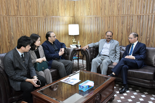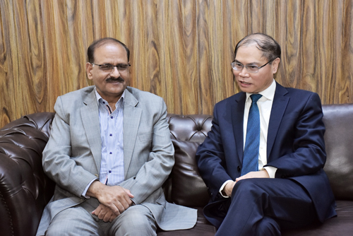 FAISALABAD Feb 25: Ambassador of Vietnam H.E Pham Anh Tuan on Tuesday said Pakistan and Vietnam mutual cooperation in the area of agriculture and trade are being further strengthened to get benefit from each other experience. He was talking to Prof Dr Muhammad Sarwar Khan, the Vice Chancellor of University of Agriculture Faisalabad at the Vice Chancellor Secretariat UAF. Deans and directors also attended the meeting. He said Vietnam imports tobacco, yellow corn and cotton from Pakistan whereas exports include coffee, black pepper and cashew nut . He said the bilateral trade relations between two countries emerge as one of most outstanding fields of the cooperation. He lauded the steps being taken on the part of the UAF for the development of the agricultural sector. The meeting also discussed the exchange and demonstration of agricultural technologies especially for small farmers, and cooperation in the areas of animal vaccines and malnutrition was also discussed. Prof Dr Muhammad Sarwar Khan said that UAF is in collaboration with Washington State University (WSU). We have wheat lines from WSU that are tolerant to climate changes. He said the university has introduced high-yielding Genetically Modified sugarcane for Insect and Herbicide-tolerance. He said commissioned research is being promoted to solve the real problems of agriculture. He said that the university was also working on introducing industrial hemp as cash crop. He said that around 85 percent of the farming community is the small farmers. And we have to induce latest cutting-edge technologies to solve the problems. He further stressed to expand the international corner where more international centers can be built with cooperation of the international community including Vietnam.
