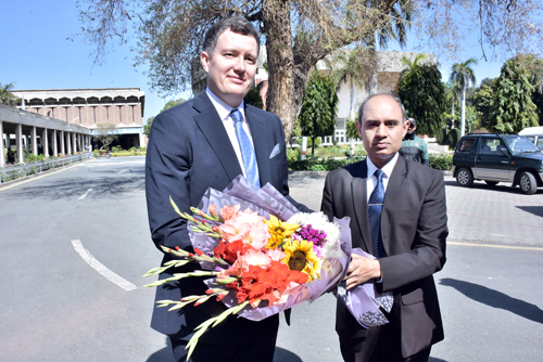 Mr. Ben Warrington, Head of Lahore Office/ Foreign Commonwealth Development Office, British High Commission Lahore visited the University of Agriculture Faisalabad. He met faculty members and discussed the areas of cooperation in technology, climate change and council-university-industry linkages. He congratulated Prof Dr Zulfiqar Ali on assuming the charge of Vice Chancellor and extended his best wishes.