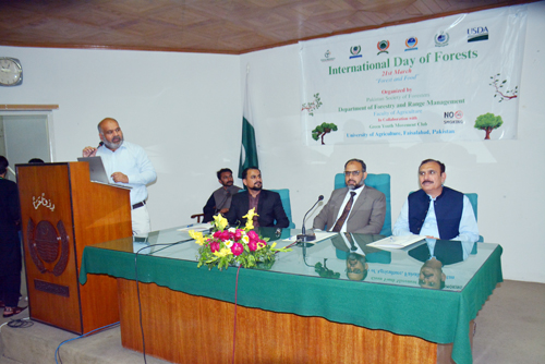FAISALABAD Mar 21: Amid the situation when Pakistan is ranked as the most vulnerable country to climate changes in South Asia according to Climate Risk Index 2025, and water scarcity issue has also taken a nasty turn, it is crucial to promote agro forestry, planting of tree on farmlands, and increase the green cover to save the coming generation from devastation. It was stated by UAF Vice Chancellor Prof Dr Zulfiqar Ali while addressing the seminar titled “Forests and Food” organized by the Department of Forestry and Range Management, University of Agriculture Faisalabad (UAF) to mark World Forest Day. He said that agro forestry and green initiatives will not only address the issue of declining soil health by adding micronutrient but also control the air humidity and improve microclimate. He emphasized the importance of tree plantation in addressing water scarcity, highlighting Pakistan’s rich diversity of trees and plants. He said that agroforestry combines agriculture and forestry technologies to create more integrated, diverse, productive, profitable, healthy and sustainable land-use systems that can help making our agriculture system more resilient to climate change. He said that deforestation is not only provoking floods and draught situation but also intensify the climate changes impacts. He praised initiatives such as the Saudi Green Initiative, Middle East Green Initiative and Pakistan’s Green Pakistan Initiative, calling them crucial steps toward environmental sustainability. Encouraging university students to take an active role, he proposed to increase the range of plantation campaign in the every corner of the country, reinforcing the role of youth in shaping a greener future. Chairman Forestry Dr Irfan Ahmad said when the world is grappling with changing climate, everyone has to take part in the green drive. He added the university is taking all possible measures to save the nature with plantation and awareness. He added that with the passage of time, some species of trees are facing severe challenges that need attention of the experts. He said the university has kicked off a massive campaign in the main campus and all its sub-campuses in which thousands of saplings are being planted. Dr Abdul Rasool Awan from NIAB, said that currently Pakistan has only 4.8 percent forests net whereas according to the world standards it should be at least 25 percent. Dr Muhammad Asif emphasized the crucial role forests play in global food security and sustainability. He said that with tree Plantation drive, we will make a lasting impact on our environment and secure a greener, healthier future Dr Fahad Rasheed said that the planting is crucial for environmental restoration, climate change mitigation, and biodiversity conservation, offering various benefits like carbon sequestration, soil erosion prevention, and air quality improvement. Dr Shahid Ibne-Zameer. Dr Nadeem Akbar Dr Haroon Rasheed and other notables also spoke at the event. They discussed how forests contribute to biodiversity, climate change and livelihoods of millions.