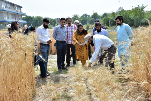 FAISALABAD April 17: The University of Agriculture Faisalabad, and MNS Agriculture University Multan in collaboration with Australia are developing ever-first hybrid wheat in Pakistan that will prove a millstone to increase the productivity. It was discussed by University of Agriculture Vice Chancellor Prof Dr Zulfiqar Ali (online) while talking to Wheat and Crop Management CIMMYT team who visited the University of Agriculture Faisalabad and held a meeting with Plant Breeding and Genetic wheat group scientists to discuss the hybrid wheat scope and collaboration in this regard in Pakistan. Dr Sajid Ali, Country Representative and Dr Ansaar Ahmad, Research Associate, Wheat and Crop Management CIMMYT along with Dr Javed Ahmad Director Wheat Ayub Agriculture Research Institute also visited the wheat field. Plant Breeding and Genetics Scientists Dr Muhammad Kashif, Dr Rizwana Maqbool, Dr Umara Sahar Rana, Dr Raheela Rehman, Muhammad Farhan and Muhammad Awais also attended the meeting. UAF Vice Chancellor Prof Dr Zulfiqar Ali said that hybrid wheat is being developed in local lines that will bring the tangible results. He said they are testing the new hybrid wheat in different zones of the province. He said it is need of the hour to increase per acre production of the country as it was very low compared to the developed world. He also shed light on hybrid wheat research work of the university. Talking about other wheat initiatives of the university, he said that the Punjab Seed Council has recently approved “Chenab Pasta-24,” a new drought and heat-tolerant Durum wheat variety developed by University of Agriculture Faisalabad (UAF). This development marks a significant milestone in Pakistan’s ongoing efforts to combat climate change and ensure national food security. He said that UAF in collaboration with Washington State University, has developed wheat lines resistant to climate changes, and will be entered in varietal approval process soon. Dr Sajid Ali said that demand for wheat by 2050 is predicted to increase by 50 percent from today’s levels. Meanwhile, the crop is at risk from new and more aggressive pests and diseases, diminishing water resources, limited available land and unstable weather conditions—heat in particular. CIMMYT’s Global Wheat Program is one of the most important public sources of high yielding, nutritious, disease- and climate-resilient wheat breeding material that could help wheat breeders any where for developing climate resilient varieties in their country. He lauded the efforts being taken on the part of university for developing the first ever hybrid wheat lines in the country.