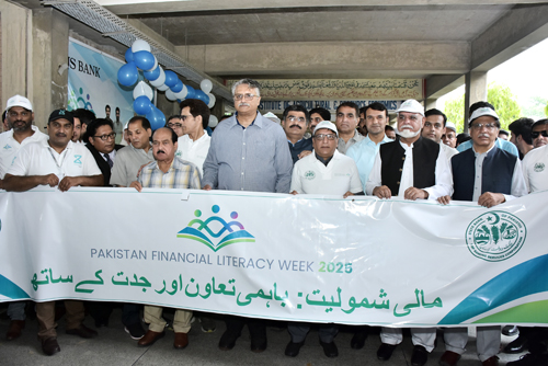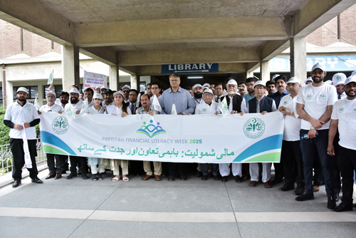 FAISALABAD April 18, 2025: As part of Pakistan Financial Literacy Week 2025, a Financial Literacy Walk was organized at the University of Agriculture Faisalabad. The walk commenced from the Institute of Agriculture and Resource Economics and concluded at Clock Tower of UAF, in which students, faculty members and representatives of the banking sector participated. The walk was led by Waqas Kashif Bajwa – Chief Manager, the State Bank of Pakistan, Banking Services Corporation (SBP) Faisalabad, Dean Faculty of Social Sciences Dr Babar Shahbaz, Registrar Umar Saeed Qadri, Dr Muhammad Asghar and others. Participants included students, faculty members, presidents and executive members of chambers, trade associations, and business bodies. Also in attendance were students from institutes for special persons, representatives of women-focused NGOs, bankers and stakeholders from various walks of life. The walk aimed to raise awareness about the importance of financial literacy and promote inclusive financial practices across the community.