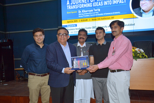 FAISALABAD Apr 25: We have to equip our youth with modern skills to get our share in the international markets, said Dr Khurram Tariq, the former President, Faisalabad Chamber of Commerce & Industry. The University of Agriculture Faisalabad (UAF) Business Incubation Center (BIC) organized an engaging interactive session titled “A Journey of Innovation: Transforming Ideas into Impact”. The event took place at the CAS Auditorium. Emphasizing the transformative impact of artificial intelligence (AI), Dr Khurram Tariq stated that the current era belongs to AI and data sciences. He said in next 10 years, around 180 million jobs would be created in the fields of AI and Data Science around the globe. He stressed the urgent need to develop technically skilled workforce to secure a fair share of these opportunities and to effectively compete in the rapidly evolving global landscape. He said if we fail to adopt a forward-looking strategy, our nation may be left with only low-level and traditional jobs. He emphasized the critical role innovation plays in economic growth and sustainable development, especially in the modern, competitive business environment. He encouraged students and young professionals to think beyond traditional frameworks and take bold steps towards turning their ideas into impactful projects. Talking about his own entrepreneurial journey, he discussed the significance of perseverance, adaptability and strategic thinking. Director BIC Prof Dr Iftikhar Ahmad shared that last year, more than 41 students launched their startups with BIC’s support. He underscored the impact of nurturing entrepreneurial skills among the youth to build a sustainable and innovative future. He stressed that universities are not just centers of academic learning but also hubs for entrepreneurial exploration Mr. Waheed Khaliq Raamay, Co convenor Academia Industry Linkage Committee of FCCI also spoke on the occasion. The session also highlighted the importance of collaboration between academia and industry, and how such interactions can fuel innovative startups and socio-economic development.