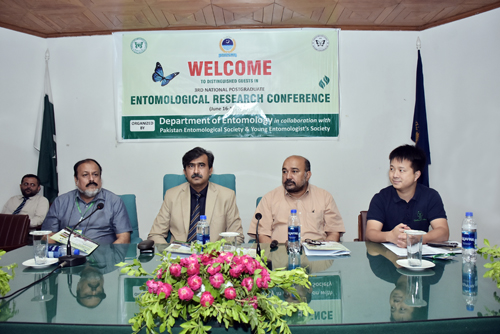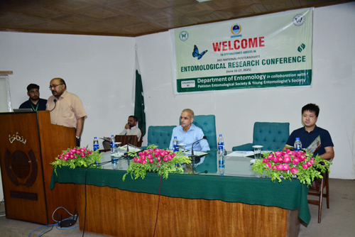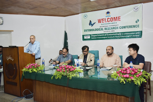 FAISALABAD June 17: With changing climate pattern and excessive use of pesticides in agriculture, the insects’ resistance has intensified, posing serious threats to food security. For which, entomologists will have to enhance their role in coping with the situation at the national level. It was stated by the speakers while addressing at Third National Postgraduate Entomology Research Conference organized by Department of Entomology, University of Agriculture Faisalabad (UAF) in collaboration with Pakistan Entomological Society and Young Entomologist Society. Addressing the participants, UAF Vice Chancellor Dr Zulfiqar Ali said that with the passage of time, new diseases were breaking out, inflicting the loss of millions of rupees to the agriculture sector. He urged entomologists to come up with doable solutions with tangible research work. He added farmers should be sensitized about rational usage of pesticides and other agricultural inputs that will not only increase the production but also bring economic stability. Chairman Dept of Entomology Dr Waseem Akram said that the sector was in the grip of the different challenges that needs attention of the experts, scientists and other stakeholders He added that they were running different research projects on dengue, Integrated Pest Management, stored grain pest control, insects’ biodiversity and others . He also shared department’s contributions in dengue control and advisory services for farming communities, along with the successful eradication campaigns against fruit fly and mango mealybug. Dr Muhammad Ahsan Khan said that the Department of Entomology played a vital role in ensuring sustainable agriculture through innovative strategies. He said that the department was actively contributing to food security by addressing pest-related challenges and enhancing crop protection. Head of R&D and Regulatory Affairs Dr Amir Bashir discussed the current challenges in pest management with a focus on application techniques. He emphasized the need for precise and efficient pesticide application to minimize environmental impact and maximize effectiveness. CABI-Pakistan, Project Manager Dr Kazim Ali highlighted the importance of digitalizing pest surveillance and reporting systems in Pakistan. He said that modern digital tools can ensure real-time monitoring and quicker response to pest outbreaks. Dr Rashad Rasul also said that the Insect pest control has gained significance and called for finding out the most suitable pest control strategies. Dr Muhammad Sagher stressed upon the need to Integrated Management of Insect Pests Stored Products. He said that such advancements will enhance better crop protection strategies across the country. Faisal Bashir from Syngenta Pakistan, Ghazanfar Ali Market Head Evyol Group, Zia Ullah and other also spoke on the occasion.