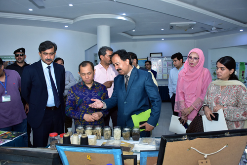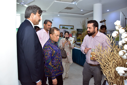 FAISALABAD June 27: Charge d’ Affaires of the Embassy of Indonesia H.E Rahmat Hindiarta Kusuma on Saturday said that Indonesia and Pakistan agriculture, academic and trade bilateral ties will be strengthened to get benefit from each other experiences and fight the common challenges. . He visited the University of Agriculture Faisalabad and called on UAF Vice Chancellor Prof Dr Zulfiqar Ali, deans and directors. He also stressed upon the need to enhance the people to people contact that will bring the both nations closer. He said Pakistani students were studying in Indonesia and his country was providing ample opportunity of scholarships from which Pakistani students should get benefitted. He said that we should also enhance research collaboration and faculty students exchange programs for betterment in the agricultural field. He hailed the steps being taken on the part of UAF for agricultural sector. UAF Vice Chancellor Prof Dr Zulfiqar Ali said that strengthened relations would help get benefit from each other experiences and meet the challenges of the modern era. He said that the food security was one of major concerns. He said that 40 percent of our population is malnourished. He said that UAF was the first university in Pakistan to start the Human Nutrition and Dietetics degree program He said that under International partnership, the university was housing Chinese Confucius Institute, the language and culture exchange center; International Seed Testing Lab; the Pak-Korea Nutrition Center (PKNS), Center for Advanced Studies and others. He briefed about various high-yielding wheat, maize, cotton, sugarcane, mango, okra, soybean, backyard poultry, and others varieties developed by UAF scientists, contributing to national food security. He said that the establishment of language center would break down the language barrier and promote mutual understanding among the people of both countries. He added that Indonesian language courses can be started in UAF with collaborations. He also visited expo center, Center for Advanced Studies and Pak Korea Nutrition Center and lauded the UAF products and knowledge exchange.