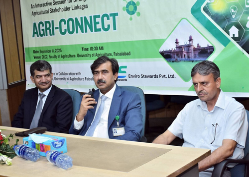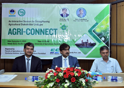 FAISALABAD Sep 11: Strong academia-industry ties in agriculture sector, value addition, need-based research and translating the knowledge into goods and services will help address the issues of low productivity and agricultural challenges. For which we have to pace up our efforts to ensure the food security. It was stated by University of Agriculture Faisalabad (UAF) Vice Chancellor Prof Dr Zulfiqar Ali while addressing the Agri-connect: An interactive session for strengthening linkages. He said that university is taking all possible measures to ensure the tangible research work and strengthening outreach programs. He also invited the industry to provide their input in curricular review process to produce skilled manpower. He said that climate changes and soil degradation was posing serious threats to the agriculture sector. Dean Agriculture Dr Ghulam Murtaza said that in the face of numerous agricultural challenges, it is need of the hour to modernize agri practices that will not only increase the per acre production but also bring economic boost. Chairman Entomology Dr Waseem Akram said that the country needs to promote precision agriculture for the optimum usage of resources and raise income of farming community. He said that in the session practitioners from industry and farmers were invited to discuss the way forward to ensure agrarian uplift. Zhang from Silk Bio-tech Agri Industry, Dr Saddam Hussain, Dr Sagheer, Malik Shamsheer, Nadeem Tariq. Ahmad Saleem from Tara Group, Ahmad Naveed, Shafiq ur Rehman and other notables also attended.