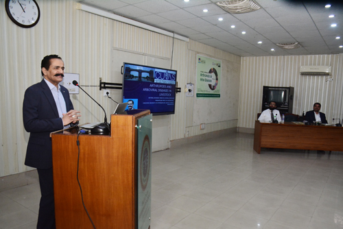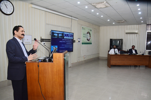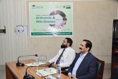 FAISALABAD October 1: Arthropods are responsible for more than 50 percent of diseases in humans and animals. If steps are taken to control the reservoir hosts, many lives can be saved. It was stated by speakers 4th One Day Hands-on Workshop on Arthropods and Arbo Diseases arranged under the patronage of Prof. Dr. Zulfiqar Ali, Vice Chancellor, University of Agriculture Faisalabad and Convenorship of Prof. Dr. Muhammad Sohail Sajid, Principal Investigator and Chairman of the Department of Parasitology, Faculty of Veterinary Science (FVS) at he Conference room of the Faculty of Veterinary Science, UAF. The workshop was organized under the research project titled, "Surveillance of arthropods and arthropod-borne diseases of one health significance at the host-vector-environment interface at various agro-geoclimatic zones of Punjab, Pakistan," funded by the Endowment Fund Secretariat, UAF. Prof. Dr. Mazhar Ayaz, Vice Chancellor, Cholistan University of Veterinary Science, Bahawalpur said that diseases spread by arthropods is the great challenge and to control them, experts will have to play their role by implementing modern methods and research. Dr. Shahid Mahmood said that his faculty is making all efforts to create awareness in this regard. And stressed upon the need to joint efforts to address the issue Dr. Muhammad Sohail Sajid said reservoir hosts including rats, sparrows etc play role in diseases spread by arthropods. He said that concrete steps are being taken under the research project. He said that even today, the largest deaths in the world are due to diseases spread by arthropods. He said that they are conducting research for a better future keeping in mind climate change Dr. Zia-ud-Din Sindh, Associate Professor of the Department presented the possible control strategies for the arthropods and challenges of such kind of research. Dr. Muhammad Saqib, Chairman, Department of CMS and Co-PI of the Project demonstrated the results of arthropod-borne pathogens prevalent in the country using molecular tools.
