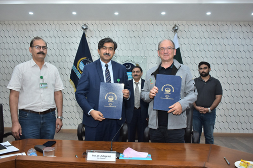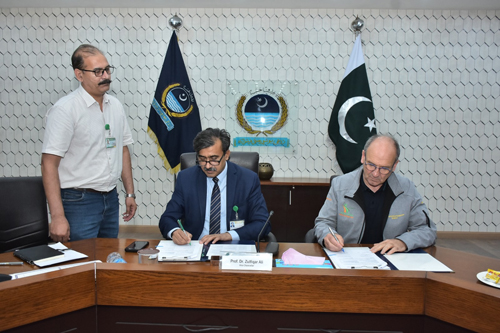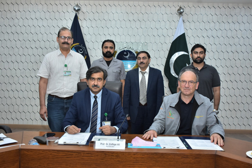 FAISALABAD Oct 3: The University of Agriculture Faisalabad (UAF) and Pak-Belgium Agri (Pvt.) Ltd. have signed a Memorandum of Understanding to enhance the cooperation in the fields of research and development initiatives, resource exchanges, information transfer and student training to promote innovation and advance research, education and community service, including the aforementioned subsectors. The area of research includes value addition in agricultural products and Agritech solutions; value addition in energy products, mechanization and precision agriculture and mitigation strategies against climate change. The MoU was duly signed by UAF Vice Chancellor Prof Dr Zulfiqar Ali and Director PBA Alain Linard. All deans and directors attended the meeting. According to MoU, both institutions will join hands in research collaboration (Hunting of Research Funding) in areas of mutual interest. They will cooperate in exchange of students, scientific information, patent filing, academic materials and publications etc. Both parties will engage students in collaborative projects, provide internship opportunities. It was agreed upon to cooperate on international seminars, workshops, conferences, educational program and other academia and research activities. In-charge, Punjab Bio-Energy Institute UAF Dr Muhammad Rizwan Tabassum and Ahsan Abdullah, Technical Support & Marketing Manager PBA are the focal persons whereas MoU was witnessed by Director External Linkages Dr Muhammad Tehseen Azhar and CEO Tariq Rasheed who also attended.