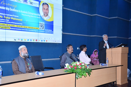 FAISALABAD Oct 09: To meet the needs of ever increasing population, it is necessary to equip the youth with leadership skills, innovative thinking and entrepreneurial vision to boost country’s economic growth. It was stated by the speakers at two-day boot-camp organized by Business Incubation Center (BIC) at University of agriculture Faisalabad (UAF). CEO of Pakistan Institute of Entrepreneurship, Tahir Mehmood said that leadership begins with self-awareness and the courage to take initiative. He said every business idea can be transform into startup with teamwork, discipline and leadership qualities. He said that agriculture is the backbone of Pakistan’s economy, contributing significantly to GDP and employing a large portion of the population. The sector provides raw materials for industries and plays pivotal role in ensuring food security. Despite the importance, the sector facing many challenges. He urged students to opt for agriculture as career and take part in national stability as agriculture is the only way to rise internationally. Principal Officer Rao Zahid Abbas said that future belongs to those who think differently and act decisively. He said that leadership is about inspiring others to achieve collective goals and it is not confined to a mindset which drives progress. He added that UAF was taking all possible efforts to provide students experimental-based learning and skill-based trainings. Director BIC Prof Dr Iftikhar Ahmad said that our youth is full of potential and eager to explore new horizons, they just need appropriate and timely guidance by experts. He said that this boot-camp will empower young minds with making business strategies for becoming visionary leaders for the future. Waheed Khaliq Ramay said that youth is the ambassador of change. He said they must learn to lead with integrity in every walk of life.