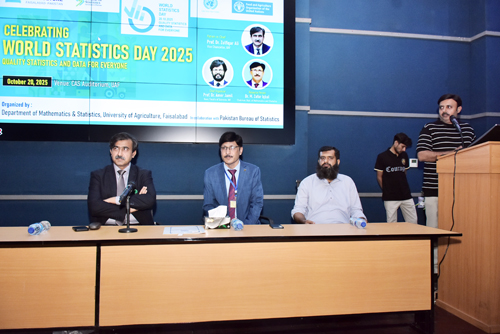 FAISALABAD Oct 20: Experts at the World Statistics Day marked at the University of Agriculture Faisalabad on Monday called for driving change with quality statistics and data for everyone, prerequisite for effective policymaking, economic planning and societal development. The event was organized by Department of Mathematics and statistics at Center for Advanced Studies (CAS), University of Agriculture Faisalabad (UAF) to celebrate World Statistics Day 2025. Speaking on the occasion, UAF Vice Chancellor Prof Dr Zulfiqar Ali said that statistics play vital role in understanding and interpreting the realities of the world as it is not merely about numbers but it is a powerful tool for understanding change. He said that it provides a scientific basis for collecting, analyzing and interpreting data, enabling informed decision-making in various fields. He said that the subject also helps in agriculture by estimating crop yielding and evaluating soil fertility. He said that it also supports policymakers and researchers in developing strategies to increase productivity and ensure food security. He added statistics offers reliable insights derived from data, reducing uncertainty. He said that whether it is government planning, business forecasting or academic research, statistical tools enable comparison, evaluation and projection of food trends. Dean Faculty of Science Prof Dr Amer Jamil said that data is the driving force of the modern era. He stressed the need for innovation in data collection and analysis to meet global challenges. He appreciated the collaboration between UAF and the Pakistan Bureau of Statistics for promoting data quality and professional capacity building. He said that equally important is building data literacy within communities, making statistics accessible and understandable to all. Chairman Department of Mathematics and Statistics Dr Zafar Iqbal said that quality statistics are essential for shaping national policies and measuring progress toward Sustainable Development Goals (SDGs). He urged young researchers to develop analytical skills and contribute to national databases for evidence-based planning. Pakistan Bureau of Statistics Director Dr Muhammad Irfan highlighted that the organization is committed to enhancing data reliability and accessibility nationwide. He said accurate data supports government planning and international comparisons, fostering transparency, accountability and sustainable progress. Dr Muhammad Kashif said that the day highlights the importance of reliable, timely and high-quality data in shaping public policy, advancing sustainable development and improving lives. World Statistics Day is a United Nations observance celebrated every five years on October 20.