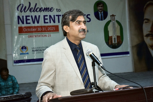 FAISALABAD Oct 30: Today’s era is an age of global competition and world is advancing at an unprecedented pace and only those nations are progressing that prepare their youth with research, technological skills and innovation. It was said by the University of Agriculture Faisalabad (UAF) Vice Chancellor Prof Dr Zulfiqar Ali at opening session of two-day orientation for the newly-admitted students in UAF at Iqbal Auditorium arranged by Directorate of Students Affairs. Talking to the students, he urged them to turn all stones for acquiring knowledge for the uplift, dignity and honor of country as was envisioned by Quaid-e-Azam Muhammad Ali Jinnah. He said the future of the country reins in the hands of the youth who are future leaders and beacon of the change in the society. He said that books are the best companion and students should spend their maximum time with the books. He stressed upon them to devote their energy and time in acquiring education which is a guarantee of the prosperity in life. He added that no nation can make the development without the skilled and quality manpower. He said that the country was blessed with tremendous talents. There is a need to tap the potential. He said that the country was running through the difficult times in terms of intolerance, poverty and other challenges. He said UAF, having global recognition, is listed as world’s 34th best university in QS ranking in agriculture and forestry. He said that varsity was making all out efforts to ensure the quality education and to provide the state-of-the-art facilities to the students. He added that the university was providing scholarships to 40 percent of the students. He said that university was putting a special focus on the research in order to address the problems of the farming community, civil society and industry. He said that only the knowledge-based economy was vital to compete with the rest of the world. All Deans shared comprehensive overviews of their respective academic divisions. They highlighted the diverse programs, research opportunities, modern facilities and practical learning environment. They encouraged students to actively engage in academic, research and co-curricular activities to assure continuous guidance and support throughout their educational journey. Deans Dr Ghulam Murtaza, Dr Anjum Munir, Dr Qamar Bilal, Dr Shahid Mehmood, Dr Amer Jamil, Dr Zahid Abbas, Dr Shazia Ramzan, Dr Waqas Wakil, DG Food Sciences Dr Issa Khan, Dr Kasab, Director Student Affairs Dr Nadeem Abbas, Senior Tutor Dr Shoukat Ali, Chief Hall Warden Dr Anwar ul Haq, Chief Hall Warden Female Dr Sidra Ijaz, Chairperson Female Sports Bushra Sadia, Registrar Dr Asif Kamran, Treasurer Zeeshan Ishfaq Bukhary, Controller Examination Muhammad Tariq, PO Students Affairs Dr Riaz Virk, Director Financial Assistance Dr Nazia Ehsan, and other notable are briefing about the university rules and regulations, academia and research.