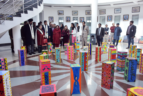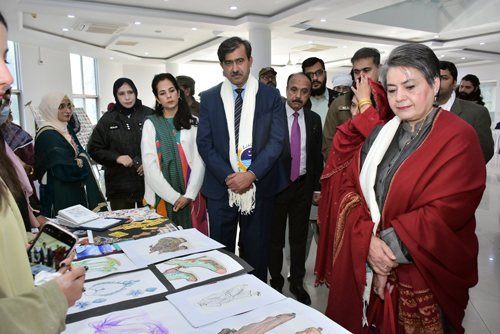 FAISALABAD December 17: The University of Agriculture Faisalabad (UAF) arranged art gala, featuring startups, visual, graphic and textile designs related to handicrafts and painting, clothing, jewelry and innovative business plans. The work depicts the creativity and entrepreneurial skills of the students. As many as around 100 stalls were put on display by the students of Faculty of Arts and Humanities, which remained the center of attraction for the audience. Art lovers in droves thronged the varsity to have the joy of colors of artwork The art gala was inaugurated by University of Agriculture, Faisalabad Vice Chancellor Dr. Zulfiqar Ali, who was flanked with City Traffic Officer Faisalabad Nasir Javed Rana, Faisalabad Medical University Vice Chancellor Dr. Zafar Ali Chaudhry, GC Women’s University Vice Chancellor Dr. Kanwal Amin, Director Public Relations Faisalabad Maqbool Malick, Dean Arts and Humanities Dr Shazia Ramzan, Kiran Khalid and others. Dr. Zulfiqar Ali called for promoting innovative approach, creative thinking and entrepreneurial skills among the young generation for bright future and ward off the economic woes. He said that art is not just a hobby but it is a powerful means of expressing thoughts and emotions. He said that this art gala will play an important role in highlighting the dedication and hidden talents of the students for starting startup. He said UAF has always played a vital role in nurturing and refining inner traits and creative abilities of the students. Nasir Javed Rana artists see the world minutely and presents in an attractive way. He said it is heartening to see such creativity and passion among the students. He said that besides academic learning, such platforms are indispensable for personality grooming and development. Dr. Zafar Ali said that the artist presents the inequalities and beauties of the society in a good way, which broadens the perspective of the viewers. Dr. Kanwal Amin said that we have to develop innovative and creative thinking in the young generation. She praised the steps of the university for honing the skills of the students Dr. Shazia Ramzan said that in the today world where people were facing anxiety, such galas do not only provide an opportunities to get refuge from monotonous routine but also enhance the entrepreneurial skills of the young generation so that they can become job providers rather job seekers. She said that it is ritual of the university to arrange such events, providing platform to showcase talents. Kiran Khalid said that the university has a tradition of continuously organizing programs to highlight the hidden talents of the students.