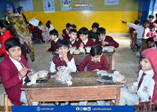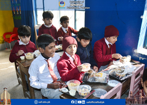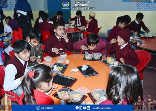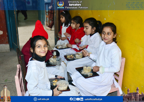 FAISALABAD Jan 21: The Chair of Nutrition and Public Health, Pak-Korea Nutrition Center (PKNC), University of Agriculture Faisalabad (UAF) has launched one-month School Meal Programme at Junior Laboratory School, aimed at improving the nutritional status. The one-month Programme serves five different nutritious meals to the students, with one meal provided each day. The meals are planned to ensure a balanced supply of energy, protein, vitamins, and minerals, while also taking students’ taste preferences into account. The inauguration ceremony was held at the School, in which PKNC Central Project Director Dr. Muhammad Atif Randhawa was chief guest. Chair Nutrition and Public Health Dr. Beenish Israr, Principal Officer (PO) Laboratory Schools Dr. Syeda Samina Tahira, Sana Arif, Dr. Hina Hafeez, Principal Junior Laboratory School, UAF Ms. Sahar, faculty members, teachers, and student attended. Dr. Muhammad Atif Randhawa said that school-based nutrition interventions are vital for building a healthy and productive generation. He emphasized that balanced meals at school not only improve physical growth but also enhance concentration, attendance, and academic performance. He appreciated the efforts of the Chair Nutrition and Public Health, PKNC for translating research and knowledge into practical community service. Dr. Beenish Israr, stated that the School Meal Programme is designed according to the nutritional needs of school-going children. She added, the initiative reflects PKNC’s commitment to promoting child and community nutrition through practical, evidence-based approaches. Dr. Samina Tahira said that such programmes not only improve children’s health but also create awareness among parents and teachers about the importance of nutritious food in daily life. She said that the programme can become a model for future school-based nutrition interventions across the region.