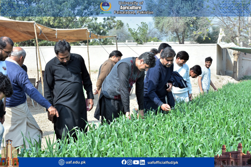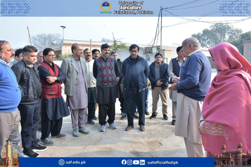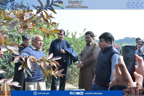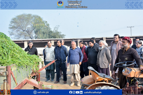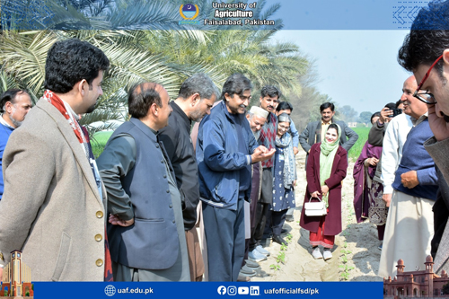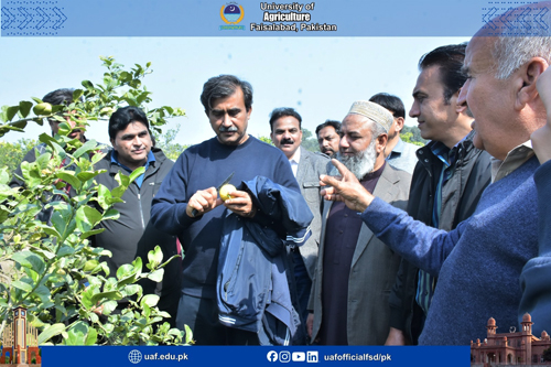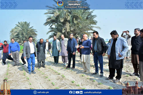 FAISALABAD Feb 8: Amid the situation of decreasing agricultural land, low per acre productivity and food insecurity concerns, it is prerequisite to promote mechanization and latest agricultural practices to ensure the food for ever-increasing population. It was stated by former Livestock Minister and progressive farmer Mumtaz Khan Manais while talking to a delegation of University of Agriculture Faisalabad experts who visited his model farms in Tibba Sultanpur Vehari. The delegation was led by UAF Vice Chancellor Prof Dr Zulfiqar Ali. The delegation visited citrus orchard, cotton, onion , livestock, wheat fields, fisheries, biogas plants and others. Mumtaz Manais said it is a matter of concern that farmers' sons do not want to become farmers. He said that mechanization was a way forward to save the resources, boost up productivity and address the pest issue. He urged the experts to come up with tangible policy recommendations that will herald the agricultural prosperity. He added that students of the agricultural sciences must be equipped with the field training to be aware with farmers’ issues. He said that the country was equipped with four seasons, but we were unable to tap the potential. Talking about the livestock, he added livestock sector has the potential to rescue the economy. He said that the halal meat global market was 300 billion dollars while Pakistan share in it is only 300 million. UAF Vice Chancellor Prof Dr Zulfiqar Ali said:" Manais farm is a model for the farming community that is based on mechanization and latest practices". He added that agriculture was the backbone of economy, contributing to 23 percent to GDP . The decreasing agricultural land and deteriorating soil health demand innovative intervention in this sector to meet the demands of the increasing population, he said, adding that with the latest practice, we can not only increase the productivity but also make agriculture a profitable sector. He lauded the measures being taken on the part of the government to address the farmers issue and for agricultural uplift. He said:" UAF is committed to ensure the food security, produce tangible research work, technology development, trained manpower and outreach." He was accompanied by Dr Shahid Mehmood, Dr Babar Shahbaz, Dr Rao Zahid Abbas, Dr Asif Kamran, Dr Azeem Iqbal, Dr Ahmad Sattar, Dr Waseem Akram, Dr Nadeem Akbar, Dr Muhammad Tehseen Azhar, Dr Anwarul Haq, Dr Abdur Rehman, Dr Zain Ul Abdin, Dr Iftikhar Ahmad, Dr Muhammad Aslam, Dr Muhammad Sharif, Dr Nadeem Abbas, Dr Hammad Badar, Dr Muhammad Naveed, Dr Shafia Gul, Dr Bushra Sadia, Dr Humaira Razzaq, Dr Rashad Rasul, Dr Muzammil, Dr Fahad Rasheed, Dr Muhammad Azam , Dr Waseem, Dr Saddam Hussain, Dr Atiq, Dr Furqan Asghar and others. The team witnessed the latest agricultural practices and praised the steps being taken on the part of Manais model farm.