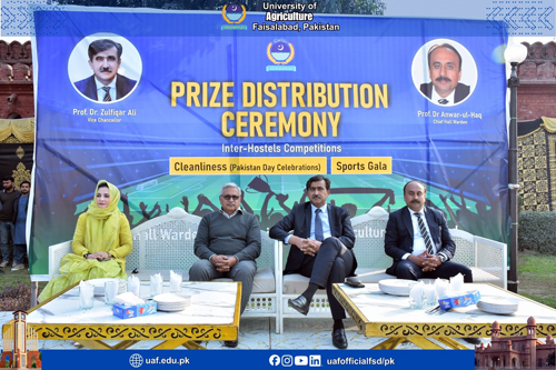 FAISALABAD FEB 11: Hostel life plays vital role in shaping students’ character, discipline and sense of responsibility and living in hostels promotes unity, mutual respect, harmony and lifelong friendship among students from diverse background. It was said that by University of Agriculture Faisalabad (UAF) Vice Chancellor Prof Dr Zulfiqar Ali during Prize Distribution Ceremony of Winning Hostels during Cleanliness and Sports Competition 2025. Chief Hall warden Dr Anwar ul Haq, Female Hall Warden Dr Humera Razzaq, Dr Jaffar Jaskani, Principal Officer Student Affairs Dr Riaz Virk and other notable also spoke on the occasion Dr Zulfiqar Ali said that cleanliness is not merely a routine activity but a reflection of discipline. He highlighted that nearly one-third of the university’s students reside in hostels, where they gain valuable learning experiences beyond classrooms and receive grooming that shapes their personalities. He congratulated the winning hostels and appreciated their commitment to maintaining a neat and healthy environment. He urged students to take part in sports and emphasized that sports are healthy activities essential for both physical fitness and mental well-being. He said that Inter-hostel sports competitions foster teamwork, unity and healthy competition. He urged students to make playgrounds vibrant during Asar and Maghrib hours instead of remaining confined within four walls and attached to mobile phones. He particularly stressed the need to ensure equal opportunities for women, who constitute 60 percent of the population. In the male hostels category, Fateh Hall secured first position, followed by Afzal Hall in second place, while Halley Hall stood third. In the female hostels category, Qazzafi Hall and Tipu Hall claimed first position, Sir Syed Hall secured second place and Khalid Hall achieved third position. Chief Hall warden Dr Anwar ul Haq emphasized that inter-hostel activities help groom students and develop leadership qualities. He assured continued support of providing safe, inclusive and well-managed hostels for all students. Female Hall Warden Dr Humera Razzaq said that a clean hostels environment promotes healthy living, mutual respect and a positive learning atmosphere. She encouraged students to actively participate in cleanliness drives and sports activities for personal and collective growth. Dr Jaffar Jaskani said that neat and healthy environment not only promotes physical well-being but also enhances academic performances. He urged all students to make cleanliness a permanent habit, not just a competition activity. Principal Officer Student Affairs Dr Riaz Virk called for promoting the sport culture in the students.
