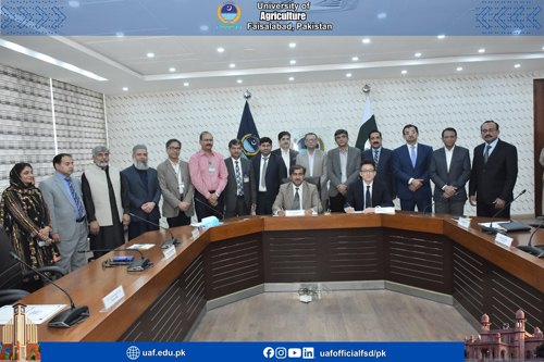 FAISALABAD Feb 23: University of Agriculture Faisalabad and Pak Suzuki has inked a Memorandum of Understanding to collaborate in Biochar and related technology, research & development and commercialization The MoU was duly inked by University of Agriculture, Faisalabad Vice Chancellor and Prof Dr. Zulfiqar Ali; and MD and CEO Pak Suzuki Hiroshi Kawamura. In line with its plan to reduce Carbon footprint for cleaner environment in Pakistan through waste to energy sustainable technologies; Pak Suzuki Motor Company and University of Agriculture, Faisalabad are entering a new phase of Joint collaboration. Deans Dr. Ghulam Murtaza, Dr. Qamar Bilal, Dr. Rao Zahid Abbas, Dr. Imran Pasha, Dr. Waqas Wakil, Dr. Shazia Ramzan, Directors Dr. Tahseen Azhar, Dr. Sultan Habibullah, Dr. Muhammad Naveed, Dr. Khurram Zia and others attended. Prof Dr Zulfiqar Ali said through Biochar Technology, we aim to convert agricultural waste into value-added products that enhance soil fertility, improve water retention, increase nutrient efficiency, and contribute to long-term carbon sequestration. This initiative supports climate-smart agriculture while simultaneously reducing environmental pollution and carbon footprint. He said that we are already working together in the areas of biogas/biofuel and biofertilizer plant consultancy, and the inclusion of bio-char technology further strengthens our shared vision of a circular bio-economy. The commercialization of biochar-based biofertilizers will contribute to improving agricultural productivity and supporting farmers across the country. Hiroshi Kawamura thanked UAF team and mentioned that Pak Suzuki in line with its vision.. “to be a trusted mobility partner for an inclusive future”; views this project as a socially responsible corporate entity where it wants to promote technologies that bring socioeconomic improvement in the lives of people; whether its farmers, students or consumers, as we believe in sustainable future for all.