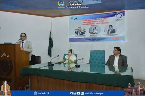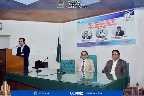 FAISLABAD Feb 26: One out of four university students are exposed to extremist content online while 40 percent increase in hate speech incidences is witnessed at campuses during the five years across the country. It was said by Dr Imtiaz Dogar, the Head Department of Psychiatry and Behavioral Sciences Faisalabad Medical University while addressing a seminar titled “From Learning Spaces to Social Peace: Empowering Minds to Prevent Violence and Extremism”. The event was organized by the Institute of Agricultural Extension, Education and Rural development at University of Agriculture Faisalabad (UAF). He added that critical behavioral red flags often precede violence and extremism, such as sudden social withdrawal, persistent anger, rigid thinking patterns and intolerance toward differing viewpoints. He discussed unique risk factors prevalent in Pakistani universities, including social isolation, unchecked emotional stress, exposure to extremist narratives and lack of constructive engagement. He emphasized that strengthening students’ emotional resilience is essential to counter negative tendencies. He added that campuses must serve as breeding grounds for peace, critical thinking and mutual respect. Regional Director Faisalabad Social Welfare Khalida Rafiq emphasized that preventing violence and extremism requires collective social responsibility. She said families, educational institutions and community organizations must work together to nurture tolerance and respect among youth. She said that intolerance and extremism can be effectively prevented by nurturing critical inquiry, ethical values and inclusive learning environments. She urged universities to introduce awareness programs, counseling services and community engagement initiatives to build a peaceful campus culture. Director Institute of Agri Extension, Dr Babar Shahbaz said that teachers must act not only as educators but also as mentors who can recognize early warning signs in students’ behavior. He added that strengthening student-teacher interaction can significantly reduce misunderstandings and frustration. He noted that constructive engagement is the most effective way to prevent violence and promote unity on campus.