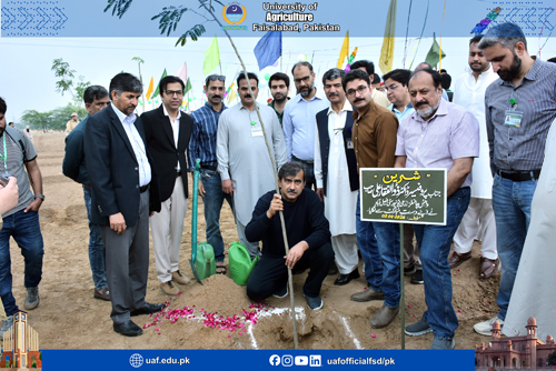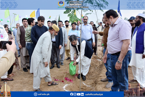FAISALABAD April 3: University of Agriculture Faisalabad has launched massive Plantation for Generations drive, meant to increase the green net in face of daunting climate challenge effect. The drive that will continue for a month is arranged by the Department of Forestry and Range Management; Dean Faculty of Agriculture and Pakistan Society of Foresters, UAF in connection with International Forest Day. UAF Vice Chancellor Prof Dr Zulfiqar Ali inaugurated the drive who was flanked with Dean Agriculture Ghulam Murtaza, Chairman Entomology Dr Waseem Akram, Chairman Plant Breeding and Genetic Dr Azeem Iqbal, Director Horticulture Dr Ahmad Sattar Khan, Chairman Forestry Dr Fahad Raheed, Director Farm Dr Muhammad Aslam, Chairman Plant Pathology Dr Abdul Rehman, Director Farm Muhammad Aslam, Dr Nadeem Abbas, Dr Nadeem Akbar, Dr Muhammad Raheed, Dr Muhammad Irfan, Dr Samar Abbas, Dr Shoukat Ali, Dr Asif, Dr Haroon, Jahanzeb Tariq and other notables. UAF Vice Chancellor Prof. Dr. Zulfiqar Ali said tree plantation is not just an activity but it is our national and moral responsibility to safeguard our environment for the future generations. He said that climate changes and alternation in weather patterns were causing a serious threat to our planet. He said: "forests are the lungs of our planet and a vital pillar for our national economy. In an era of unpredictable weather patterns, every sapling we plant today is a shield for future generations. UAF will continue to lead from the front in adopting climate-smart agricultural practices, he added. Agriculture Dean Dr. Ghulam Murtaza, said that by integrating trees into our farming systems, we can boost economic stability for our farmers while restoring depleted ecosystems. He said that tree plantation must become a regular feature of our lives to ensure long-term environmental benefits. He urged citizens to adopt plantation habit to protect our planet from the hazardous effects of climate changes Department of Forestry and Range Management Chairman Dr Fahad Rasheed said: " We should not just focus planting trees but we must ensure their survival by protecting them during initial growth period. Our department is dedicated to promoting indigenous species that ensure long-term ecological and economic benefits, he added. He said that forests provide more than just wood; they offer livelihoods and ecosystem services.