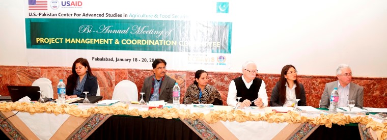 The Project Management Coordination Committee (PMCC) was held at Faisalabad Serena Hotel from January 18 to January 20,2017. Meeting was Chaired by Prof. Dr. Iqrar Ahmad Khan (S.I) vice Chancellor UAF and Director/Chief of Party USPCAS-AFS. Scientists from partner Universities from USA , Dr. James E. Hill (Chief of Party/Project Director, USPCAS-AFS/UC Davis), Dr. Nancy J. Allen (Technical Advisor, USPCAS-AFS/UC Davis), Dr. Thomas Byers (Director International Research and Development, Washington State University), Dr. Natalia Muto (Project Associate, International Research and Agricultural Development, Washington State University) along with USAID AOR Mr. Haroon Raheem attended the meeting. Project Management staff USPCAS-AFS gave presentations regarding their respective sections and departments.