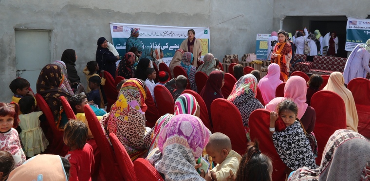 USAID funded U.S.-Pakistan Center for Advanced Studies in Agriculture and Food security, under Chair Outreach jointly organized a seminar on“MOTHER AND CHILD NUTRITION’’ماں اور بچے کی نگہداشت at community outreach center Chak No. 272JB. in which Dr. Benish Israr spoke as keynote speaker a large number of women from various surrounding areas attended the session. this serious of seminars would be continued in other parts of Faisalabad District.