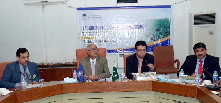 The agricultural sector needs to be revamped to catch up the modern trends, to increase the production and to make it profitable business as the sector was far lacking behind from the rest of the world, said Punjab Planning and Development Department Production Sector Wing Member Malik Mukhtar Ahmad. He addressed agricultural consultative meeting at the Syndicate Room of University of Agriculture Faisalabad. UAF Vice Chancellor Prof Dr Iqrar Ahmad Khan, Chief Agriculture P&D Department Punjab Dr Muhammad Ashraf, all deans and directors attended the meeting. He urged the agricultural experts to come up with out-of-the-box solutions to the issues facing the sector and farming community . He said that most of the farming community was having small holding. He added that 40 percent world population was living on the 14 percent of the land. He said country was situated at the geographically important place from where we can easily export our agricultural produce to the Central Asia, Middle East, China and other countries which had a large food markets. He said that value chain and marketing system must be developed at par with the international standards in order to flourish the sector. He added that tangible initiatives based on research would pave the way to compete with the modern world. He was of the view that we are wasting our resources owing to inefficient use of water and inputs etc . It is the need of the hour for the optimal usage of resources that will save millions of the rupees. He maintained that China Pakistan Economic Corridor would open up new avenue of the development and prosperity in term of business opportunity and trade. He said that the government was making sincere efforts to uplift the sector. In this regards, Punjab Agricultural Policy was being revamped to address the problems. He opined that the establishment of farmers’ cooperative had become imperative for the promotion of modern agri trends and brought the farming community out from the clutches of financial issues. Earlier, in the briefing, UAF Vice Chancellor Prof Dr Iqrar Ahmad Khan talking about the priorities areas said that the government must promote the drill sowing and quality seed especially for wheat and cotton that will enhance the growth rate upto 4 percent. He added that in Okara, cultivation of maize and potatoes was lowering down the soil fertility for which we need to introduce the soybean as third crop. He urged the government to establish a soybean center for the research and development purpose. He said that that the country was losing the grains and fruits from 20 to 40 percent in the post harvest losses for which we have to promote the modern post harvest practices. He said that amid the situation of climate changes, we have to invest on breeding to develop the climate resilient varieties. He said that the to cope with the situation of the malnutrition, people must promote the food diversification. He said that the sudden deaths of the Sheesham, mangoes, guava must be investigated. He said that forest department staff must possess the degree in the forestry and agriculture in order to address the issue of the declining forest net. He said that the rice and sugarcane are the water intensive crops which must be discouraged amid the situation when the country had been put in the list of the water scarce countries. He said that the Korean innovation park worth Rs 30 billion was being established in the university. He said that the University also houses Chinese Confucius Center. P&D Department Agriculture Chief Dr Muhammad Ashraf lauded the steps being taken on the part of the varsity for the development of the agriculture sector and for the farming community.