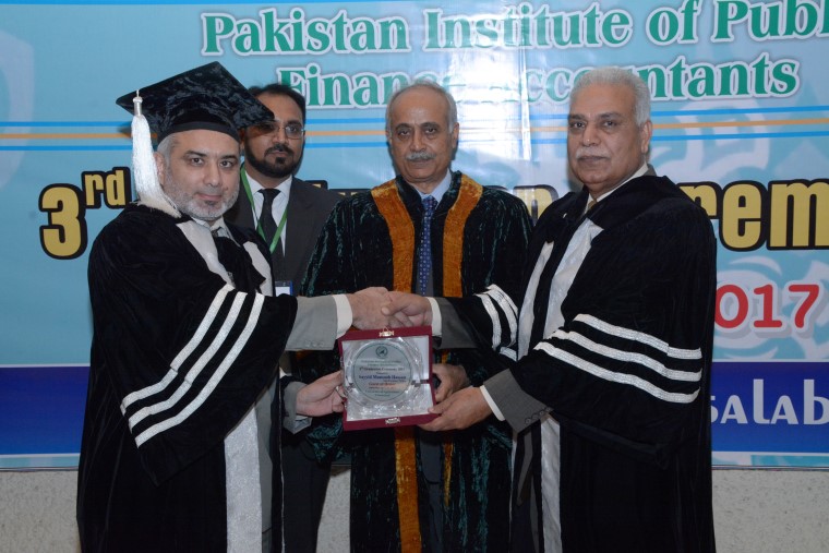 Pakistan Institute of Public Finance Accountants (PIPFA) organized third Graduation Ceremony for its Gold medalist, merit holders and Qualified Students at University of Agriculture, Faisalabad (UAF). The ceremony was presided over by UAF Vice Chancellor Dr Iqrar Ahmad Khan, while PIPFA President Intisar Ahmad Khan was the Guest of Honor of the ceremony. As many as 75 students of Faisalabad and Multan received the certificates. Dr Iqrar Ahmad Khan stressed upon the need of professional development of human resource in accounts, finance and auditing. He applauded the work done by PIPFA in this direction. He said that the UAF had inked Memorandum of Understanding with PIPFA for skill development of the UAF finance department employment. He urged the students to develop the good commination skills that will open up new avenue of progress in their lives. He said that good communication skill are imperative for making the progress and to fight the odds. Intisar Ahmad Khan called for equipping the youth with the professional education that will works as an engine for the uplift of the society. Highlighted the need of professionalism education, he said that we are lagging behind in the processional education from the rest of the world. He said that PIPFA has been producing the skilled manpower in the accounts for the last 23 years. Vice President PIPFA Sayyid Mansoob Hassan who also represented the ICMAP, urged the students for the hardworking and proving their mettle in the field. He said that the county was blessed with the talented people. There is a need to explore their potential and sharpen their God-given qualities. UAF Treasurer Umar Saeed said that there is need to highlight the importance of professional education and to promote it in the society that will help fight the future challenges.