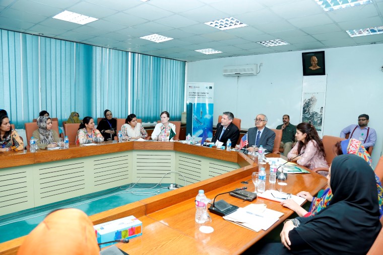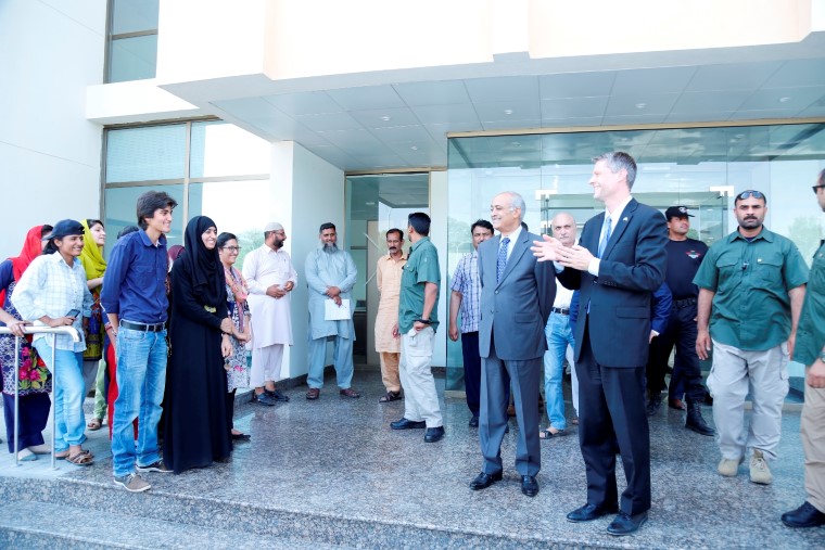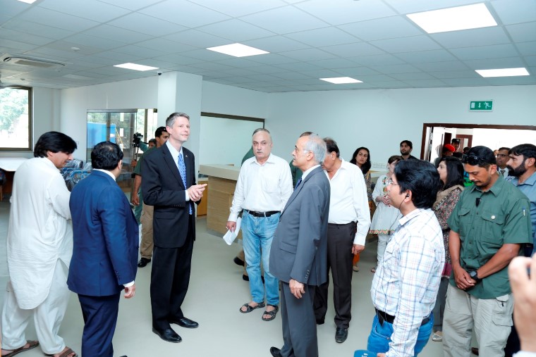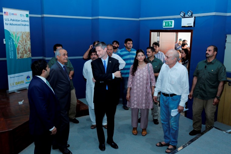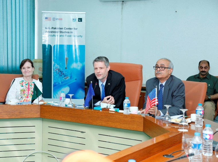 The US Consul General Lahore, Yuriy Fedkiw Visited university of Agriculture Faisalabad on Thursday May 04, 2017. He chaired a session to discuss the role of gender at University of Agriculture Faisalabad at Syndicate Room of the Varsity. Prof. Dr. Iqrar Ahmad Khan (S.I), Vice Chancellor apprised him regarding gender issues and steps taken by the University Administration in this regard. U.S. Consul General stressed upon the need for more effective Gender role to promote education and research. Dr. Nancy J. Allen DCOP USPCAS-AFS UCDAVIS, Dr. Sadiya Ilyas Assistant Prof. Department of Chemistry and Gender Specialist USPCAS-AFS, Dr. Farah Riaz Assistant Prof. & Incharge Institute of Home Sciences, Dr. Benish Serwar Lecturer Institute of Home Sciences Dr. Bushra Sultana Assistant Prof. Biochemistry, Dr. Ameer Bibi Assistant Prof. PBG, Dr. Lubna Anjum Assistant Prof. Irrigation & Drainage Department, Dr. Rizwana Maqbool Assistant Prof. PBG, Dr. Romana Anjum Assistant Prof. Plant Pathology briefed about various aspects of gender issues. The CG also visited newly constructed USPCAS-AFS Building and inspected Lecture theater, Library and Labs. He also met with a group of female cyclist of UAF.