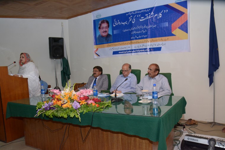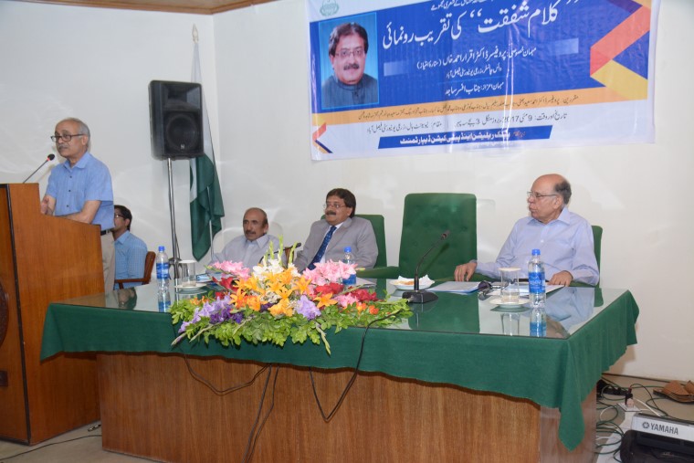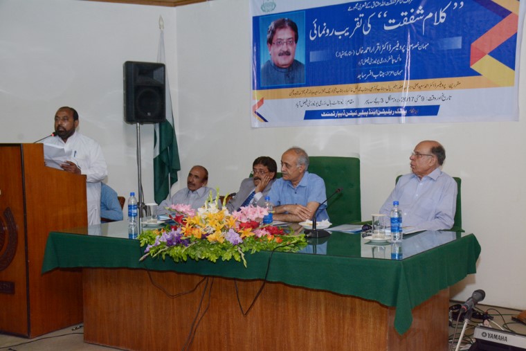 Launching ceremony of poetry book titled “Kalam-e-Shafqat” written by renowned poet Shafqat Ullah Mushtaq was held at New Senate Hall, University of Agriculture Faisalabad. The ceremony was presided over by UAF Vice Chancellor Prof Dr Iqrar Ahmad Khan while renowned poet Afsar Sajid was guest of the honor on the occasion. He said that Urdu literature contained words from various languages which is the beauty of it. The ceremony was arranged by Public Relations and Publications Department, UAF. He stressed upon need to encourage literary activities. poets and novelists because they are assets of nation. Their poetries related to nature not only creating harmony in society but also open up new thinking of youth. He showed his concerns over decreasing tolerance in society for which we have to diversified our education system and to create cultural harmony in order to wipe out trend of extremism. He lauded the efforts made by Shafqat ullah Mushtaq to pen down social ,religious and economic aspects of our society in a simple easily understandable language. Shafqat Ullah Mushtaq the poet said that this book would reflect actual face of society and would familiarized reader with issues being faced in society. He said that he inspired with the Sufi poets of the Punjab . He said that he had tried his best to speak about the real issues of society in his poetry. Notable guests Afsir Sjid, Dr Saeed Ahmad Bhatti, Dr Sadef Naqvi, Koser Ali, Dr Shahida Moshin, Shahzad Baig, Kashif, Naseem Khan and Dr Rashem spoke on the occasion .
