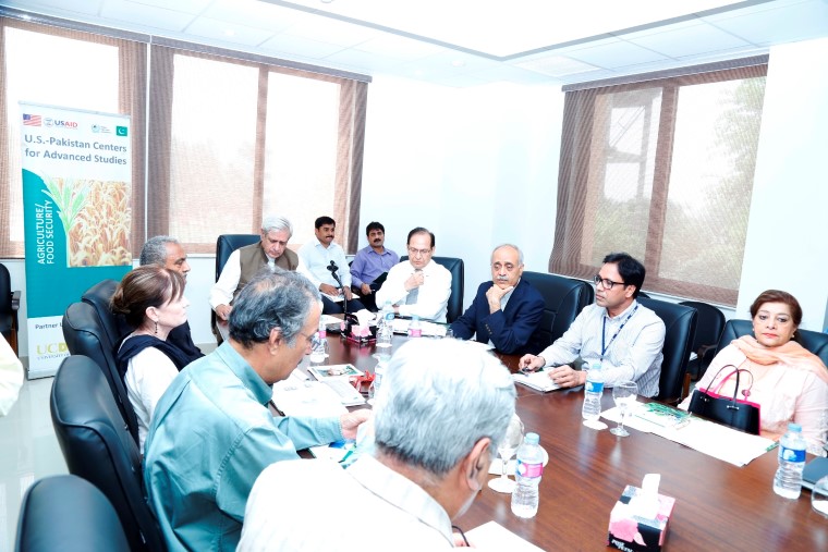 Joint meeting of Steering Committee and Council for Research & Policy" held on August 05,2017 at CAS Building. The meeting was chaired by Syed Fakhar Imam (former, Speaker National Assembly) along with Prof. Dr. Iqrar Ahmad Khan (Vice Chancellor, UAF/ Chief of Party, USPCAS-AFS), Dr. Mehmodd ul Hassan Butt, (representative HEC ), Mr. Abid Qaiyum Suleri (Chairman SDPI), Syed Zarfaryab haider (DG Agri-Extension Punjab), Mr. Afaq Ahmad Tiwana (Progressive Farmer), Dr. Nancy J Allen (Deputy Chief of Party, USPCAS-AFS,UCDavis) and Others attended the meeting.