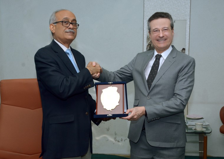 Brazilian Ambassador Mr. Claudio Lins here on Tuesday underscored the need to further strengthening bilateral ties between Pakistan and Brazil especially in the field of education, research and trade. He was discussing matters of mutual interest with University of Agriculture, Faisalabad Vice Chancellor Prof. Dr. Iqrar Ahmad Khan in his chamber. He expressed his concerns over the deteriorating climatic condition and said that human race depleted the climate and his country was also suffering badly. He said that it is the responsibility of whole society who must be united to fight the challenge of climate change. He said that the academic ties between the both countries will bring the tangible results. He assured of his complete cooperation in this regard. While applauding the efforts on the part of UAF, the Brazilian Ambassador said that professional networking of this university at international level was praiseworthy. He asked the university management to sit together with management of Brazilian universities, which is likely to visit Pakistan shortly and explore possible cooperation and collaboration. UAF Vice Chancellor Prof. Dr. Iqrar Ahmad Khan termed school nutrition program of Brazil a praiseworthy. He said that Brazil had earned good name in citrus, soybean, energy, and sugarcane. He stressed upon the need to learn from Brazil experiences. He said that we have the large population of youth. If we train them and provide quality education and skill them the country can overcome the challenges of the poverty, unemployment and low per capita income. He said that climate changes were smashing the agronomic pattern of the country. He said that joint efforts on the part of researchers, policy makers and other stakeholders are need of the hour.