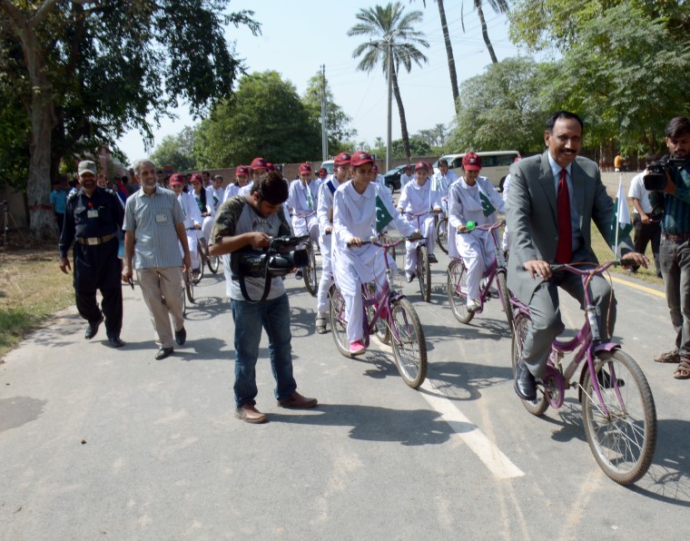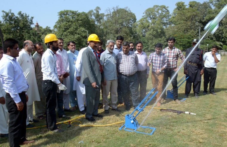 The University of Agriculture, Faisalabad in collaboration with Pakistan Space and Upper Atmosphere Research Commission (SUPARCO) opened Space Week celebration on Thursday themed “exploring new worlds in space”. The water rocket contest was held at D-Gound of the University in which 20 schools participated. Besides girls cycling contest was arranged in which 30 school students took part in 300 meter race. The week was inaugurated by UAF Vice Chancellor Dr Muhammad Iqbal Zafar while Principal School Dr Khalil Ur Rehman, Dr Abdul Rasheed, Dr Abdul Naveed while Suparco mangers Amir Ali and Saifullah along with tens of students also took part. Addressing on the occasion, the Vice Chancellor said it was aimed at creating awareness, among the students particularly and masses in general, about the space science and technologies. He said that it provided an opportunity to the students to show their creativity. He said space technology is considered to be the fourth dimension of warfare. Pakistan’s dependence on space applications and information is boosting up to catch the speed of the technology and science advancement. Talking about women, he said that women are excelling in the every field of life. He said that the education works as engine of growth to address social and economic issue. He said the empowerment of the women was vital to achieve the dream of development. The women constitute more than 50 percent of the total population. In the cycling Maria got the first position while Maria stood the second position.
