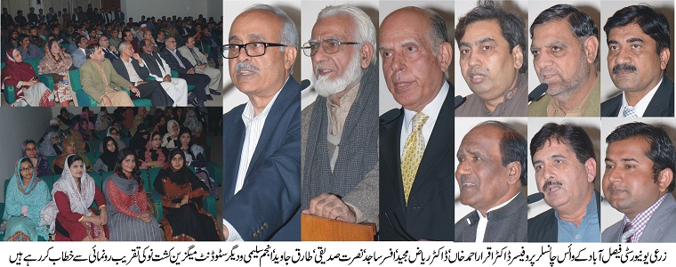 The launching ceremony of University of Agriculture Faisalabad students� magazine Kisht-e-Nau new edition was held at the New Senate Hall. Addressing on the occasion, UAF Vice Chancellor Prof Dr Iqrar Ahmad Khan said that archives corner of Kisht-e Nau will be set up at the Main Library, UAF. He said that the UAF was converting to it Old Campus into museum to preserve its history. He said that there is the need to promote the literary activities in the students to face up to the challenges of the era. He said that 45 documents of UAF belonging to its history since 1906 are kept in British museum that is honor for us. He said that the Punjab Chair is being set up at the campus to conduct the researches on the saints poets of the Punjab. Renowned educationist and poet Dr Riaz Majeed stressed upon the need to establish the Lyallpur Chair to conduct the research work and preserved the history of the city. He urged the young generation to spare their some time to understand the saints poets poetry and literature. Former civil servant and poet Afsar Sajid said that quality of students magazine speaks the volume of hard work done on the part of the students. He called for more promoting the activities. Renowned poets Nusrat Siddique, Anjum Salemi, Faisalabad Art Council Resident Director Tariq Jave, Magazine Convener Dr Tahir Siddique, CAS Director Communication Syed Qamar-ud-Din Bukhari, Chief Editor Muhammad Irfan Shaukat and other notables also spoke on the occasion