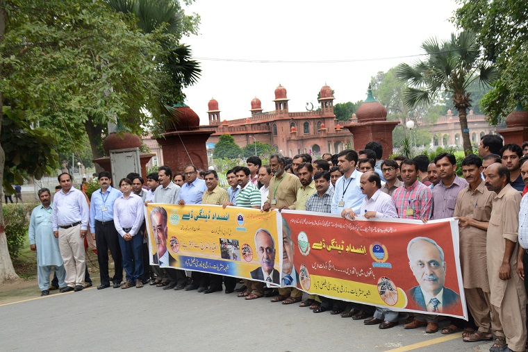 Experts at an anti-dengue awareness seminar on Thursday said the climate change was providing suitable environment for breeding of dengue larva in the region and warned that by the end of century, the world temperature would rise 1 to 3 degree that can affect half of world population. The seminar was arranged by University of Agriculture Faisalabad's Department of Entomology at New Senate as part of Punjab Government' campaign against dengue. Addressing on the occasion, UAF Vice Chancellor Prof Dr Iqrar Ahmad Khan stressed the need for taking collaborated measures by all segments of society to control the population of dengue in this rainy season, which is suitable for the growth of said mosquito. He urged the people to keep home, environment and surrounding hygiene; remove all stagnant water and containers; avoid accumulation of ground water; fill up all defective grounds and proper dispose of the plastic bags. He lauded the steps being taken by the provincial government to control the disease. He said that observing the Dengue Day was the part of Chief Minister Campaign aimed at educating the masses about prevention. Dean Faculty of Agriculture Prof Dr Muhammad Arshad urged the people to enhance their role in the campaign by raising awareness. He said that it was our responsibility to serve the community in order to save the precious lives from dengue. He urged the people to play their due role in the community services for the national cause.He said the sociologist should come up with the research on the behavioral changes and awareness among the masses about the dengue so that weak areas can be addressed effectively. Prof Dr Muhammad Jalal Arif said that his department was making all-out efforts to conduct the valuable research on dengue and to raise the awareness by arranging seminars, conference in line with the directives of provincial government. He said that they were working on comprehensive campaign for the last three years in order to address the issue at national level. He called for wrapping all unused plastic tyres and regular change of water in animal drinking containers. He said that the He said that his department had been running various research projects by setting up Dengue Group to combat this havoc. Dr Shahid Majid said that unplanned increasing population, deforestation, urbanization and climate changes were also causing its outbreak. He said that in the monsoon, there are the more chances of its outbreak. He added that there are 3500 mosquitoes species. He said that the dengue attacks in the time of sunrise and sunset. So wear the full sleeve dress in the time. The mosquito lays the eggs at the stagnant water so there breeding areas like tyres, street holes, ground holes, fridge tray, leaking water, air coolers, tree holes, birds spot must be taken care to ensure . Dr Rasid Rasul said that the precautionary measures were essential to fight the dengue In this regard, step-up efforts on the part of all stakeholders help in eliminating it and to save the lives. In the end, the awareness walk was also taken out from Admin Block to Auditorium to raise the awareness among the people