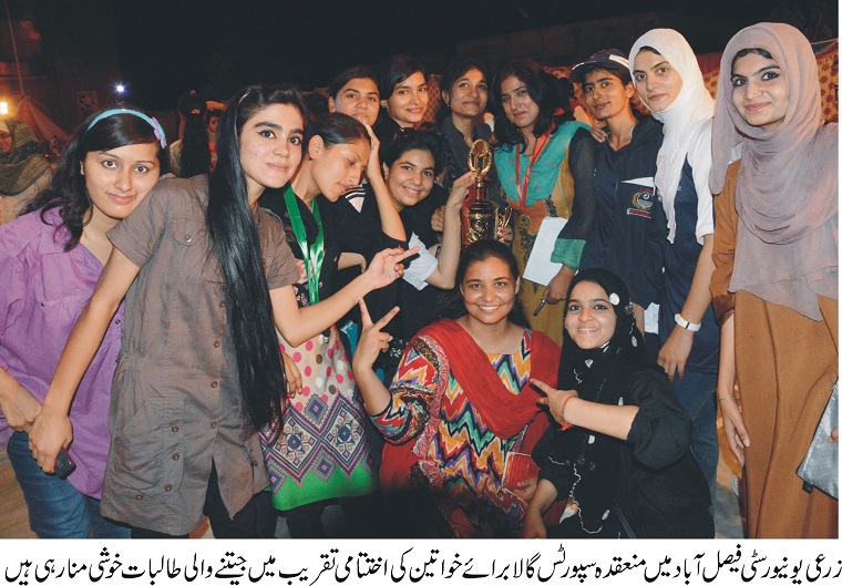 The University of Agriculture Faisalabad will establish state-of-the-art gymnasium and swimming pool for the women in order to provide them modern facilities, said University of Agriculture Faisalabad Vice Chancellor Prof Dr Iqrar Ahmad Khan. He was addressing at the prize distribution ceremony of the women sports gala organized by Office of Chief Hall Warden, the University of Agriculture Faisalabad. He said that the women ratio at the campus has touched to 50 percent and the university was making all out efforts to provide them latest facilities. He called for developing the sports man spirit so that challenges in the life can be met easily. He said that the gender ratio in the postgraduate programs is 50 percent women. img The Day Care Centre, Women Complex, Counseling Centre, Career Development Centre, have been added to facilitate the students. He said women empowerment was prerequisite to achieve sustainable development and prosperity. He said UAF was taking many initiatives to narrow the gender gap including residential and sports facilities for women. Four year ago, only 40 female teachers were serving at the campus against the current women teaching staff of 150. Chief Warden Prof Dr Muhammad Amjad Punjab Government funded mega project of women hostel for 1000 students was being set up whereas another hostel for 1000 women funded by federal government had been approved. Hall Warden Bushra Sadia said that 163 women from eight hostels had participated in different sports including athletics, tug-of-war, badminton, basket ball and table tennis and others. Chairman Sports Board Prof Dr Ahsan-ul-Haq said that all out efforts were being made to provide state-of-the-art sports facilities to the students. . Member Selection Board Rabia Sultan along with UAF Vice Chancellor Prof Dr Iqrar Ahmad Khan also distributed the prizes among the winners of the gala.
